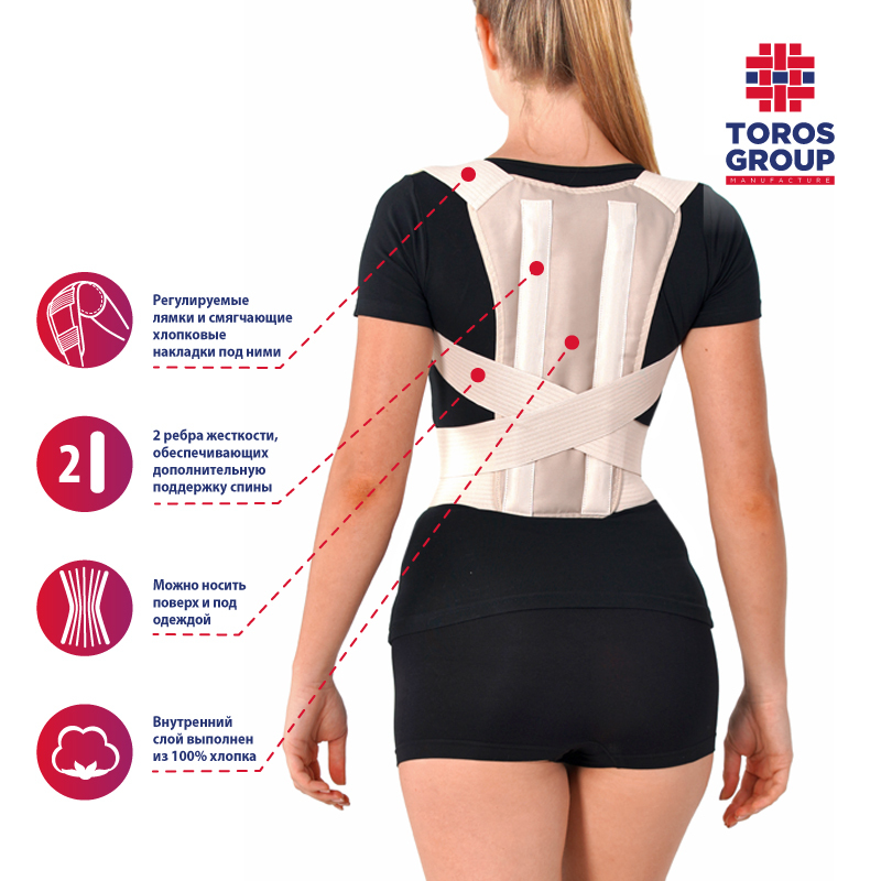 Корректор осанки Toros group, корсет для осанки бежевого цвета, Тип 651 размер-1