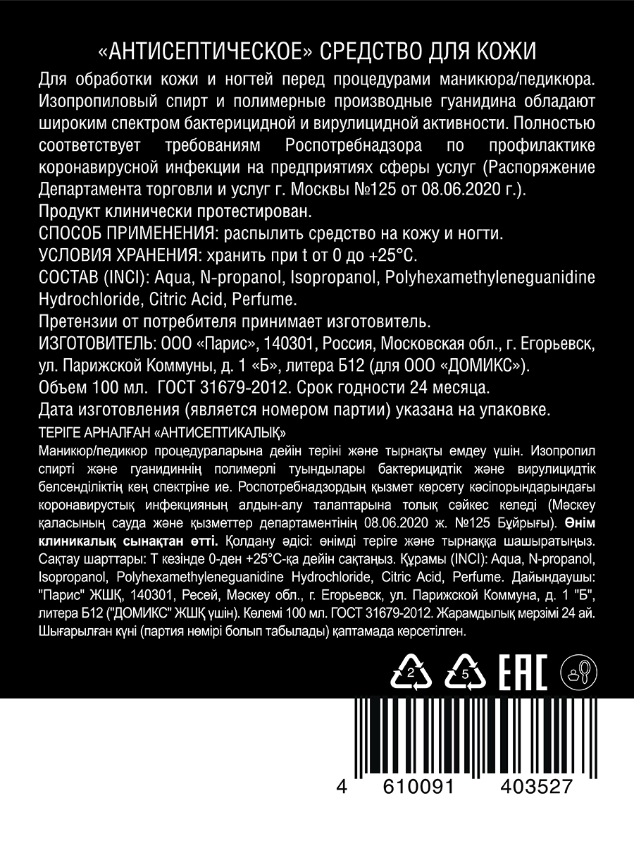 TOTALDIS PROFESSIONAL Противогрибковое антисептическое средство для обработки рук и ног "Люкс" 150мл