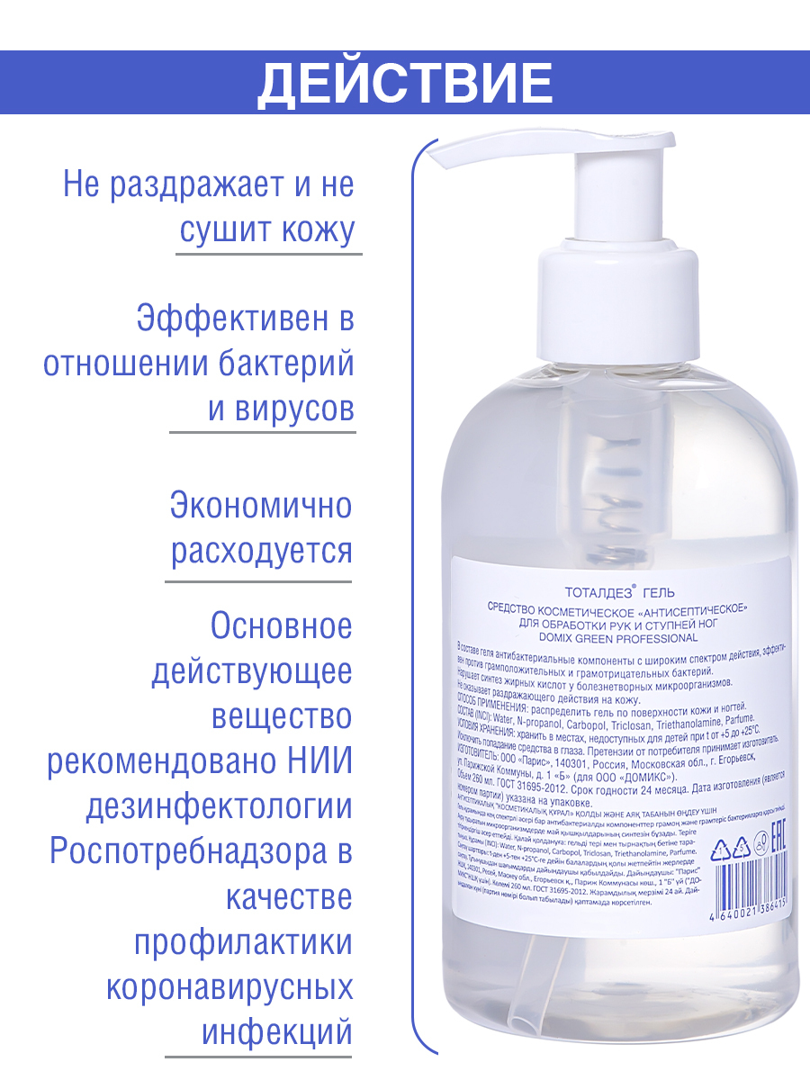 TOTALDIS PROFESSIONAL Гель антисептическое средство для обработки рук и ступней ног, 260мл