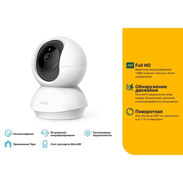 Поворотная IP камера TP-Link Tapo C200 белый