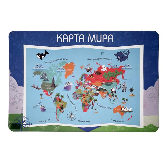 Накладка на стол пластиковая, А2, Обучающая, 640 х 430 мм, 400 мкм, НПД-3, "Карта Мира"