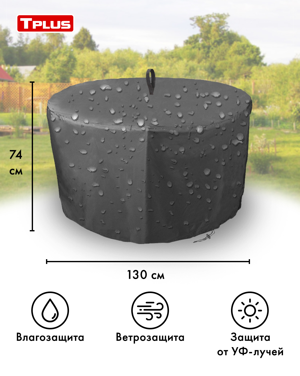 Чехол для круглого стола D1300 мм h740 мм (оксфорд 240, серый), Tplus