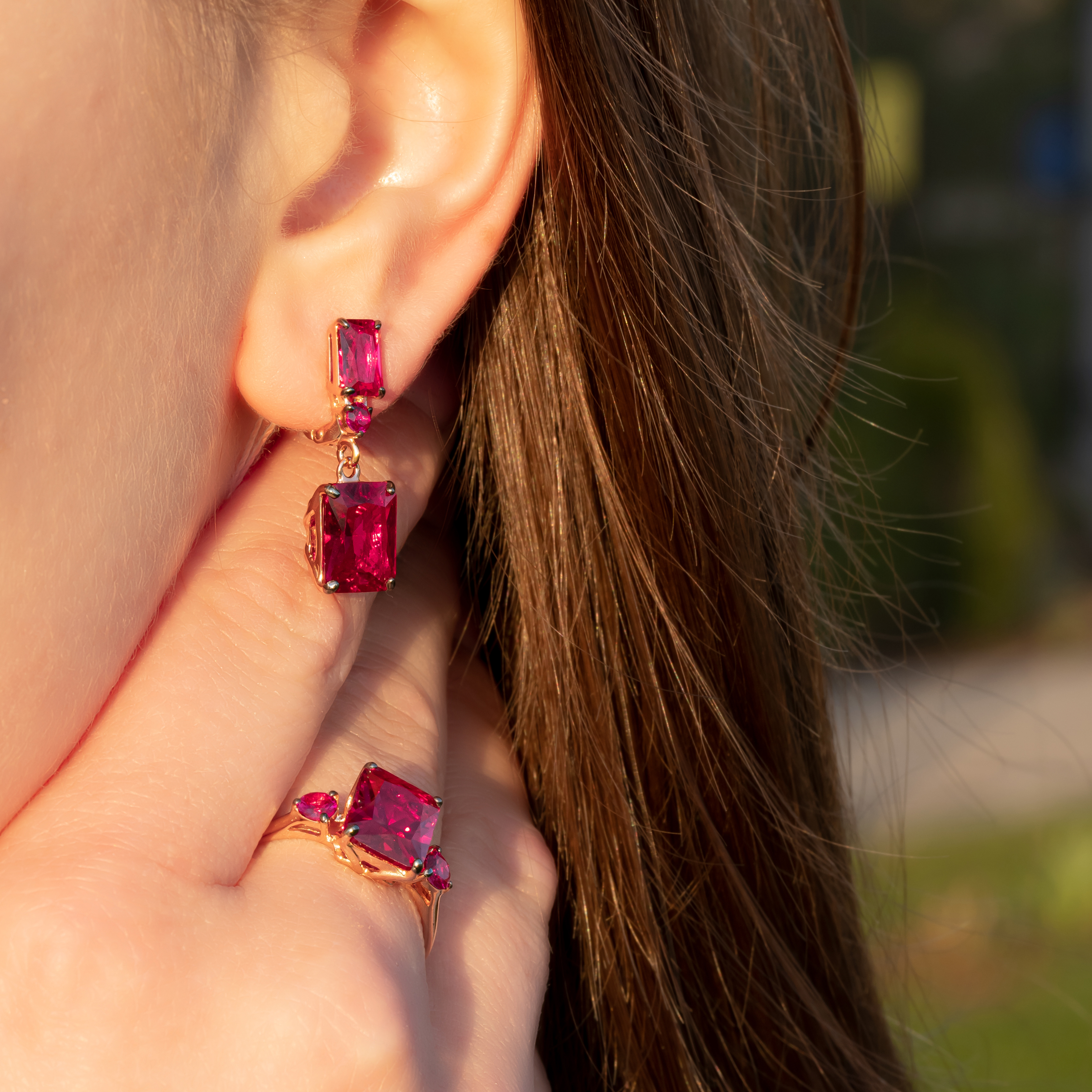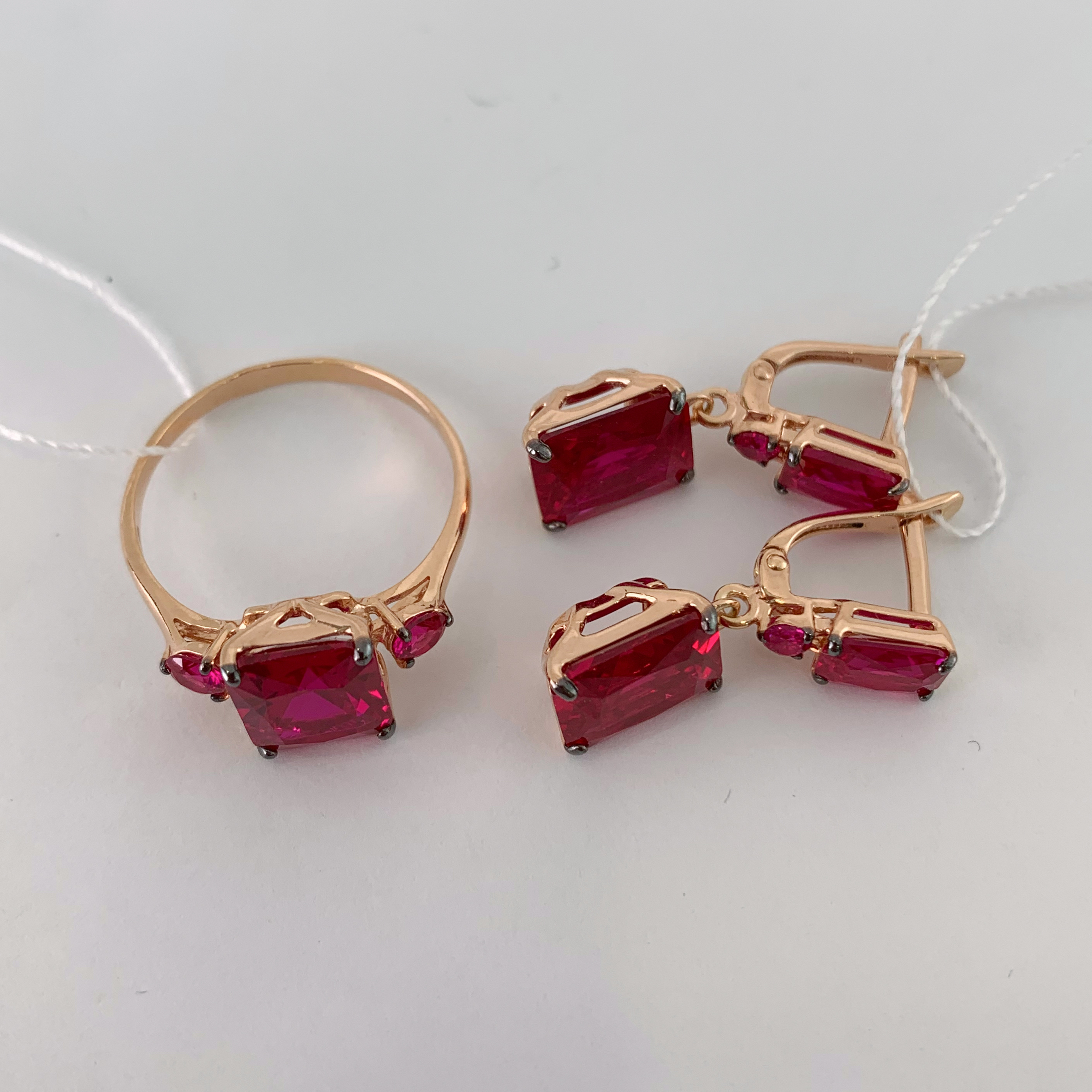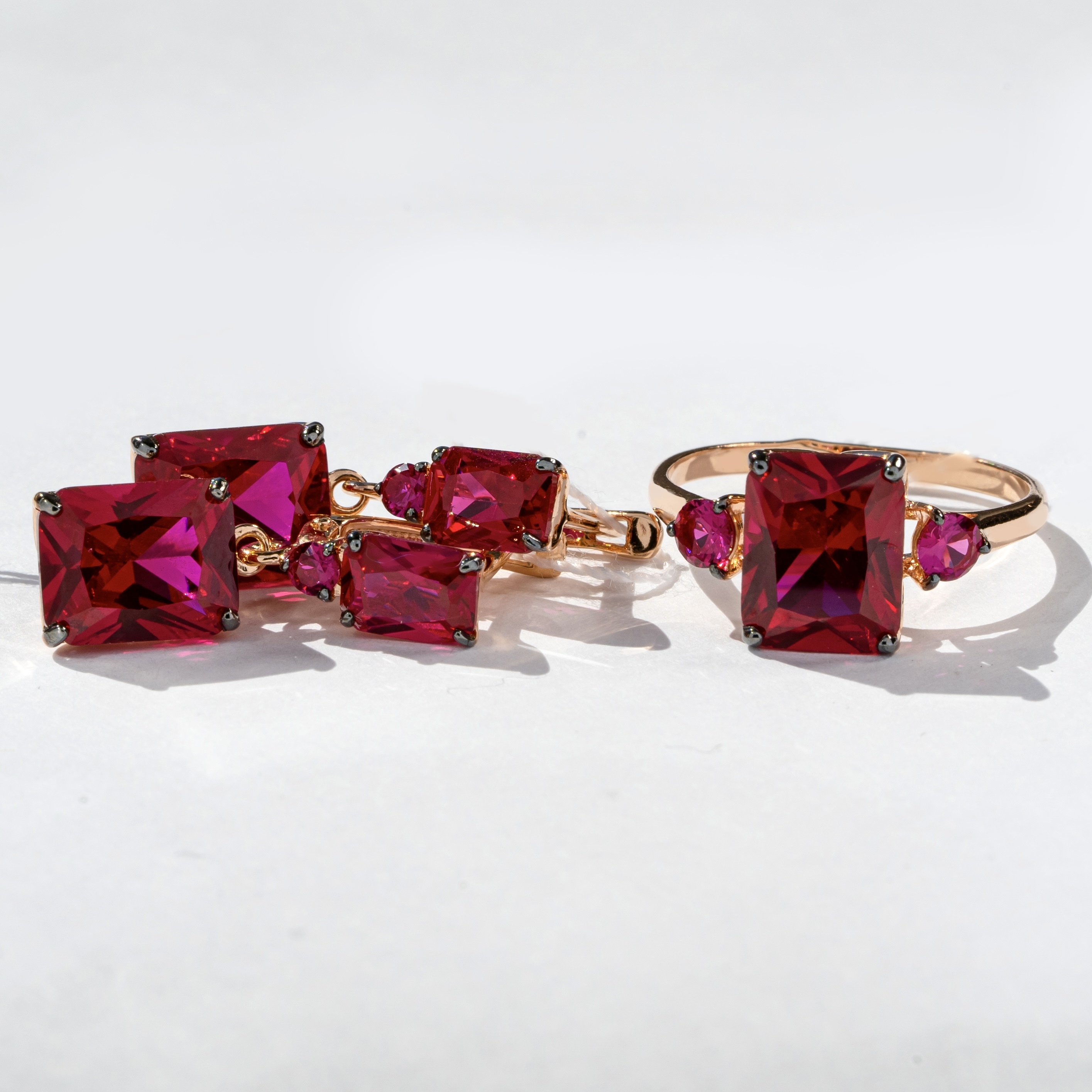 Trade Jewelry Комплект украшений из серебра 925 пробы (покрытие золото 585) с корунд Рубинами