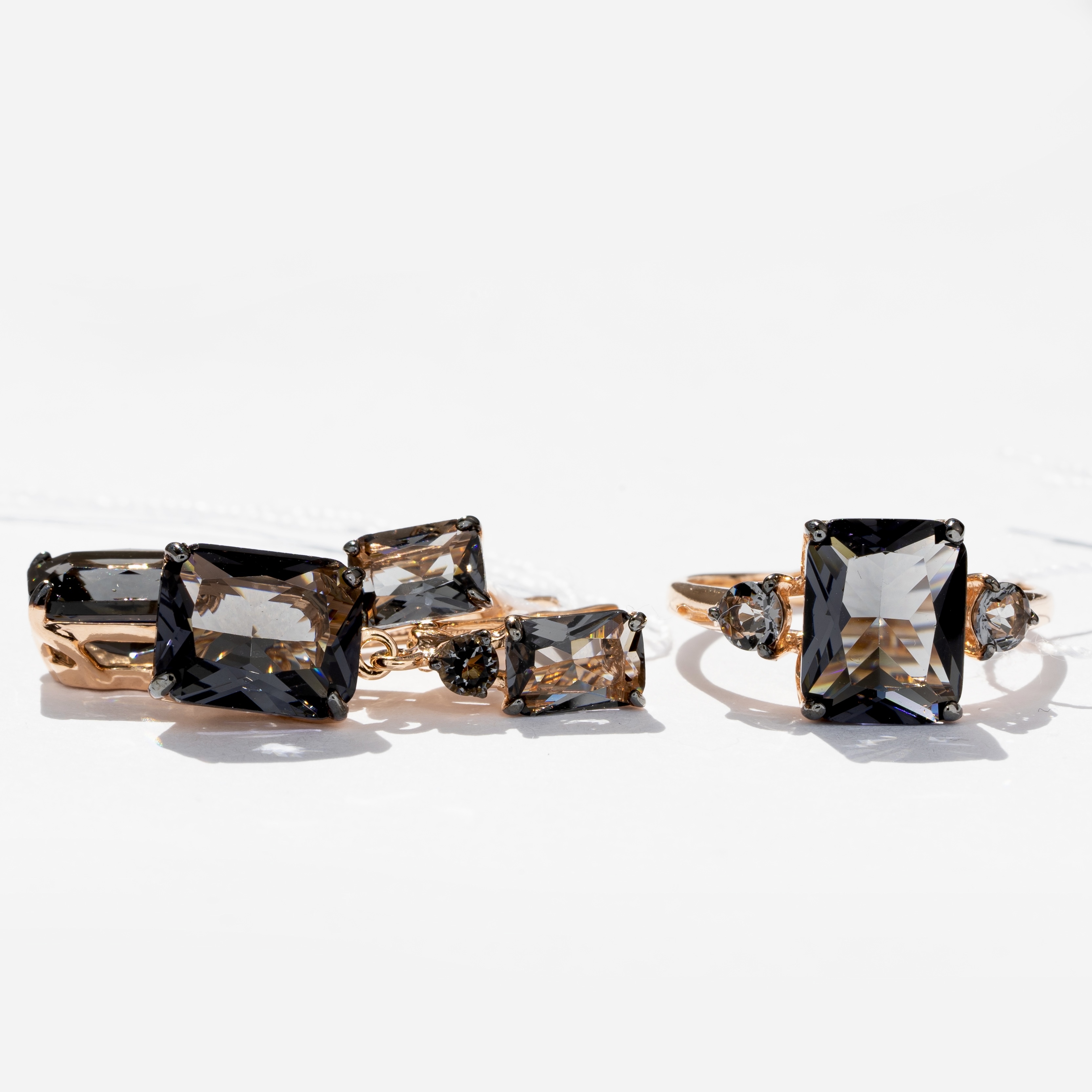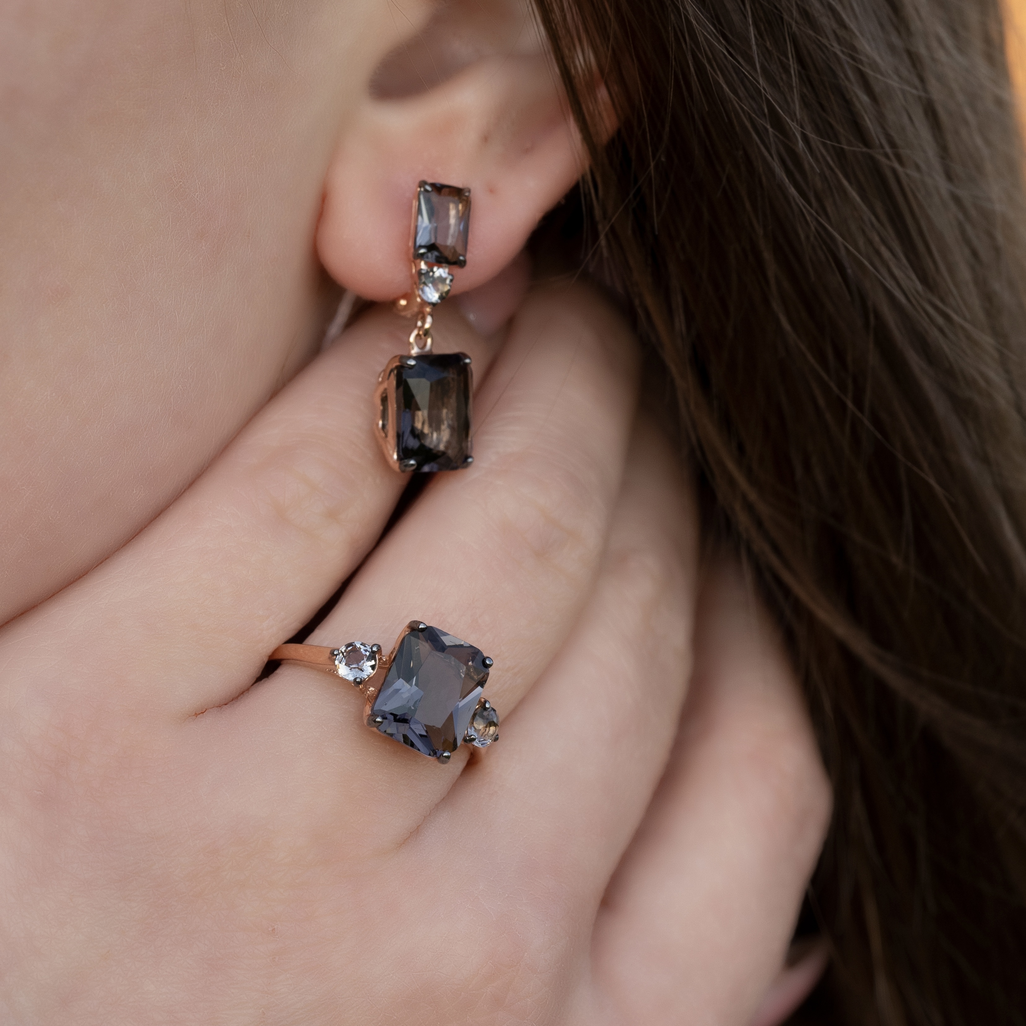 Trade Jewelry Комплект украшений из серебра 925 пробы (покрытие золото 585) с кварц черным бриллиантом