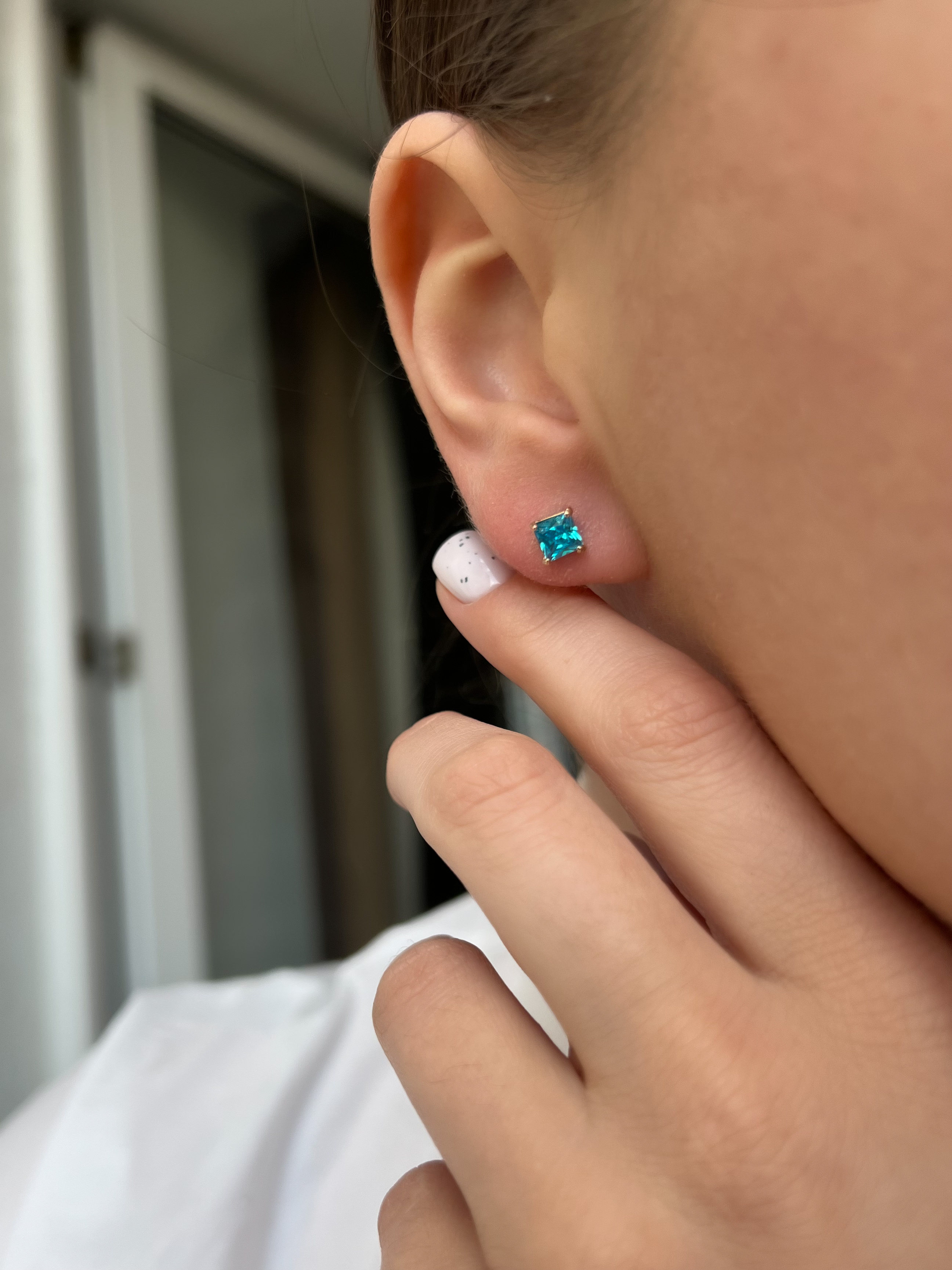 Trade Jewelry Серьги Пусеты из серебра 925 пробы с голубым топазом