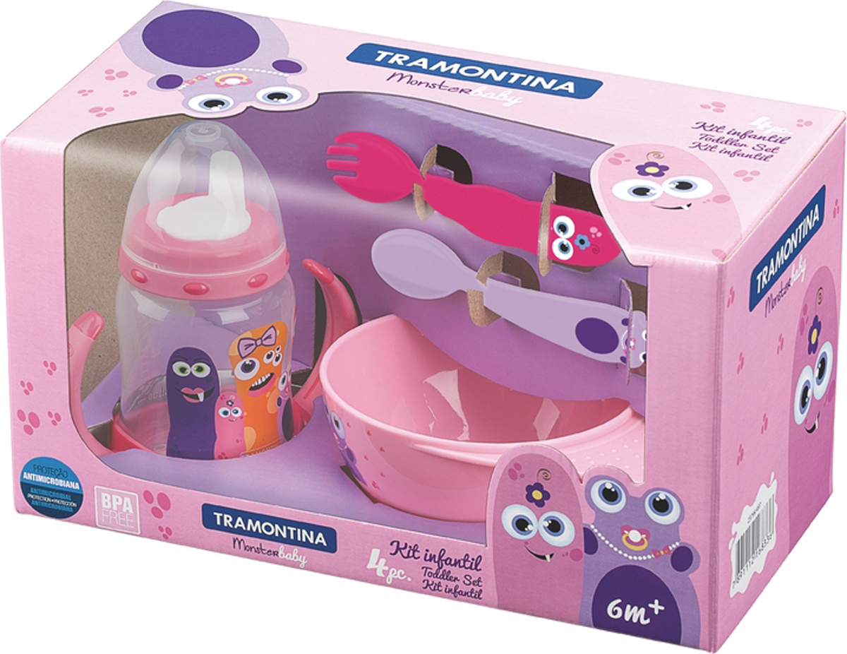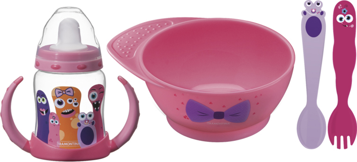 Набор детских столовых приборов Tramontina Monsterbaby, цвет: розовый, 4 предмета