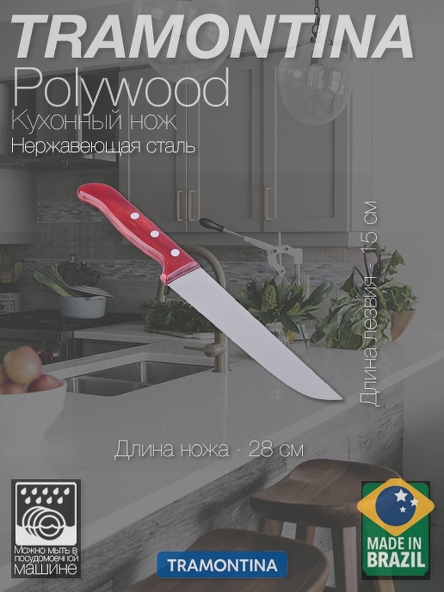 Tramontina Polywood/ Нож кухонный длина лезвия 15см, для резки овощей, мяса, подарок родным/ ГалаОпт
