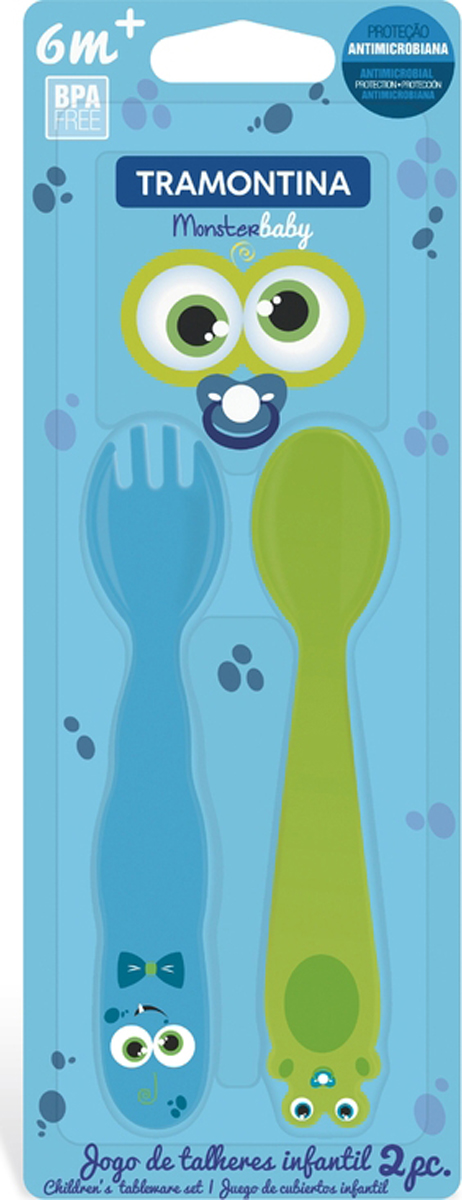 Набор детских столовых приборов Tramontina Monsterbaby, цвет: голубой, 2 предмета