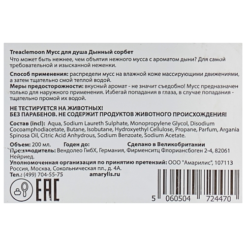 Гель для душа Treaclemoon Задумчивое манго, оранжевый, 60 мл