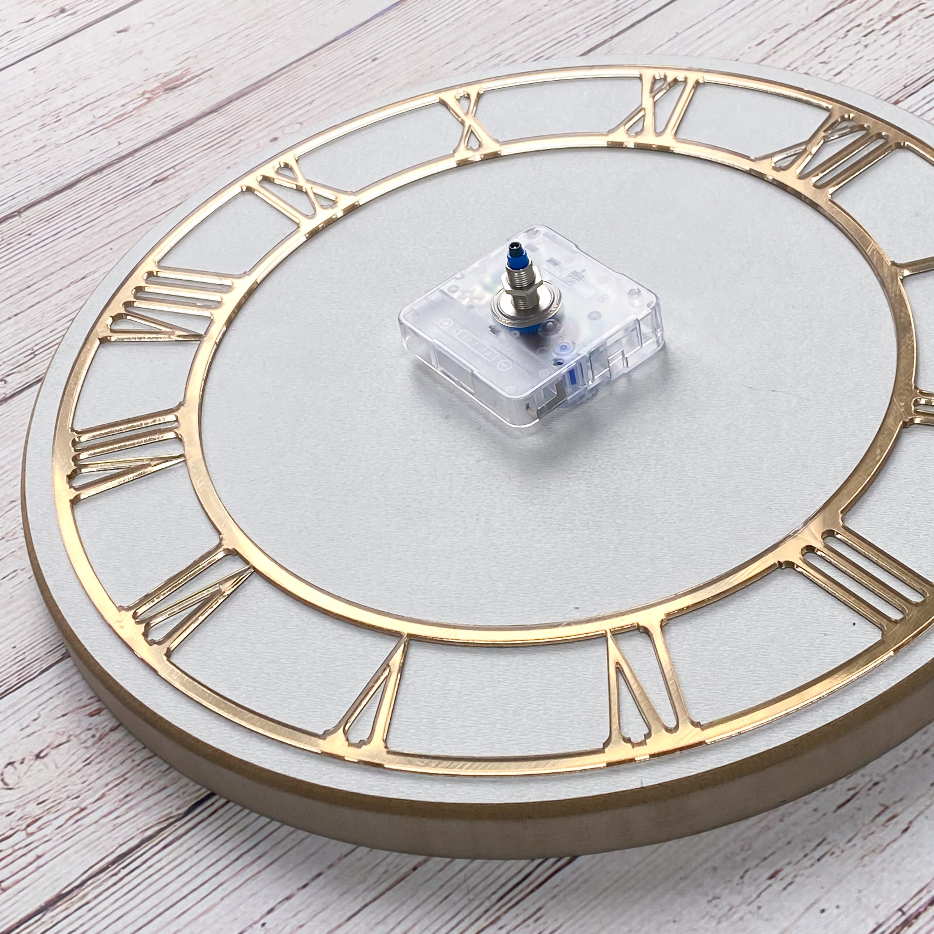 Комплект для создания часов: Артборд d-30 см, циферблат зеркальный d-28 см, часовой механизм/золото