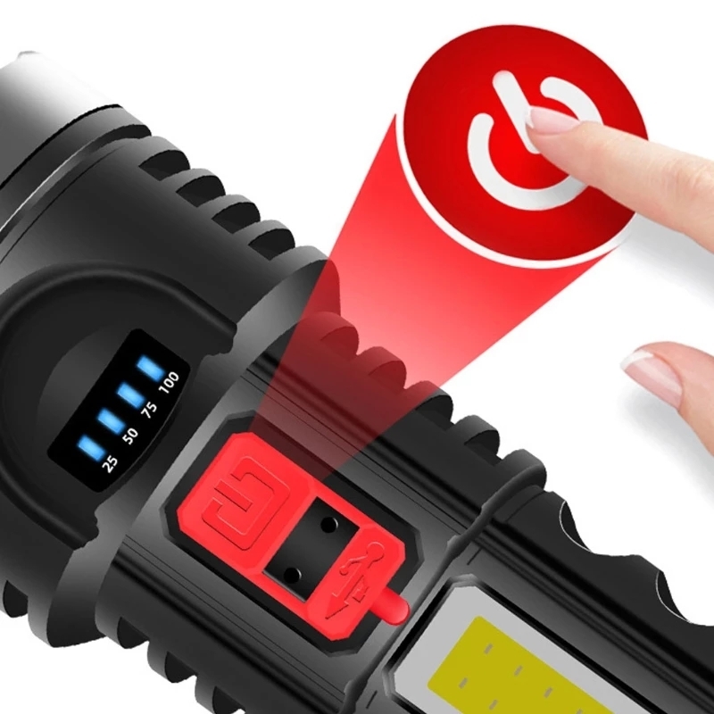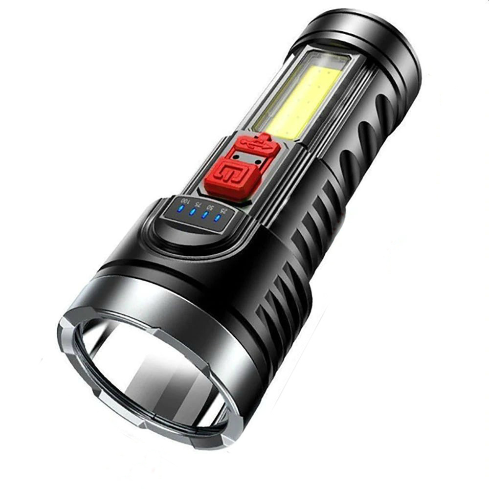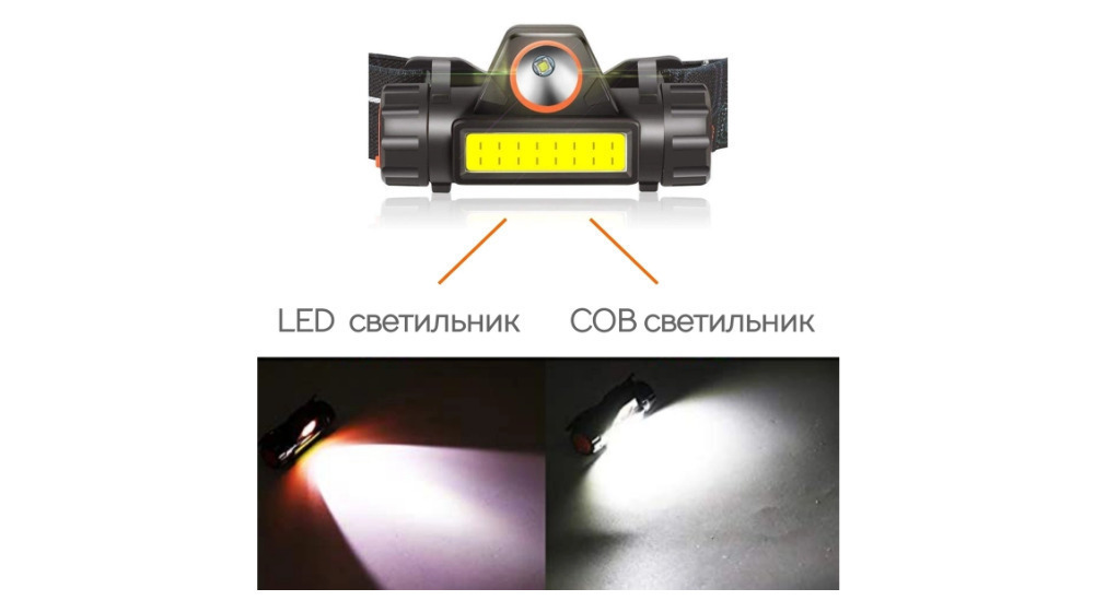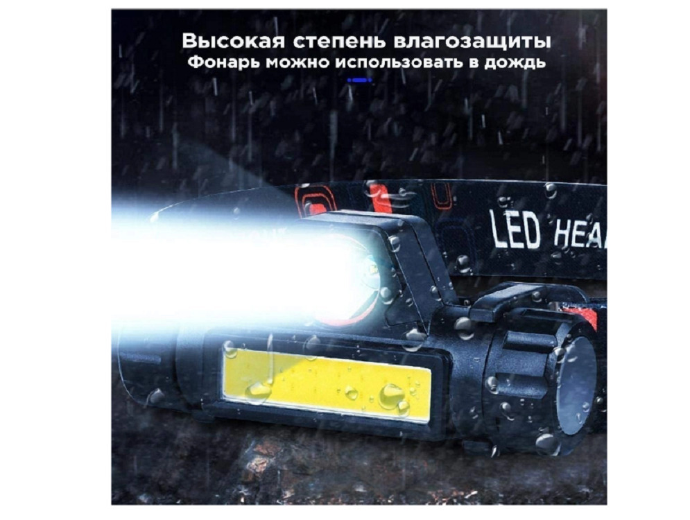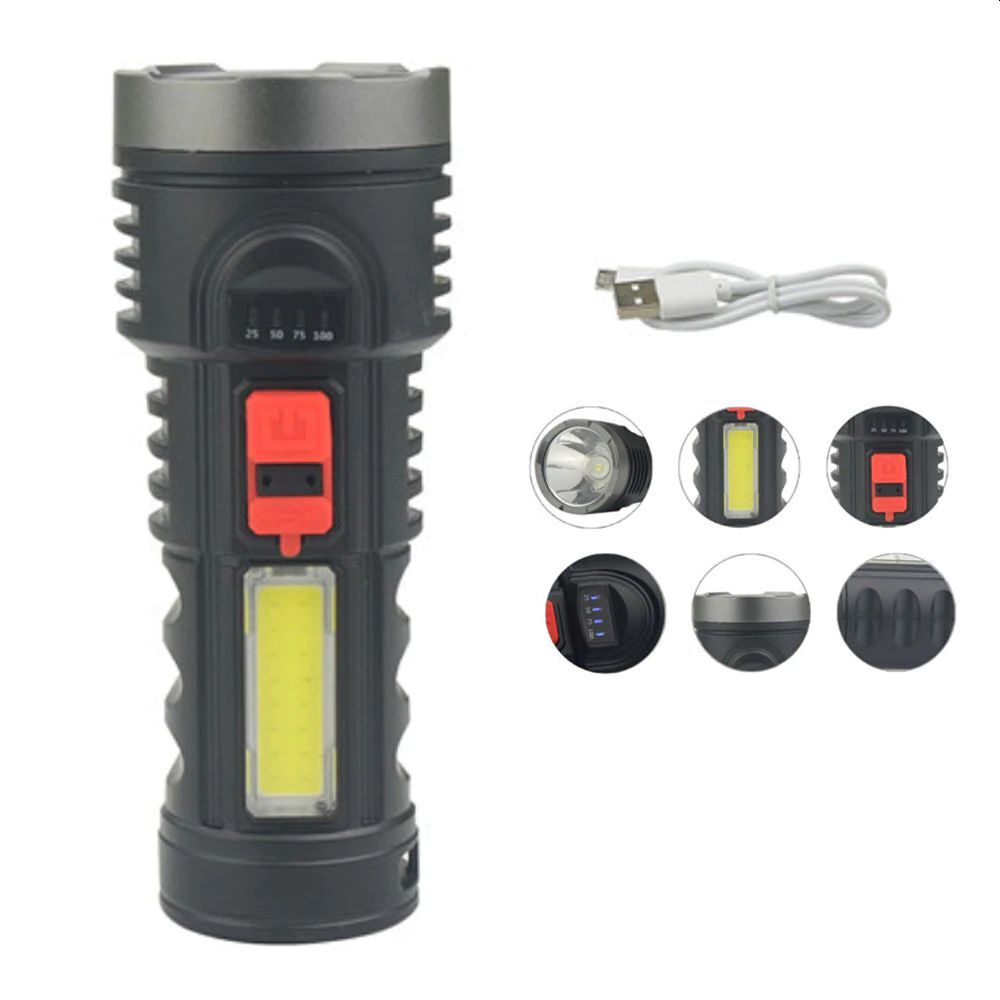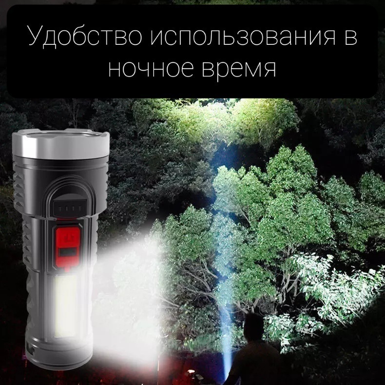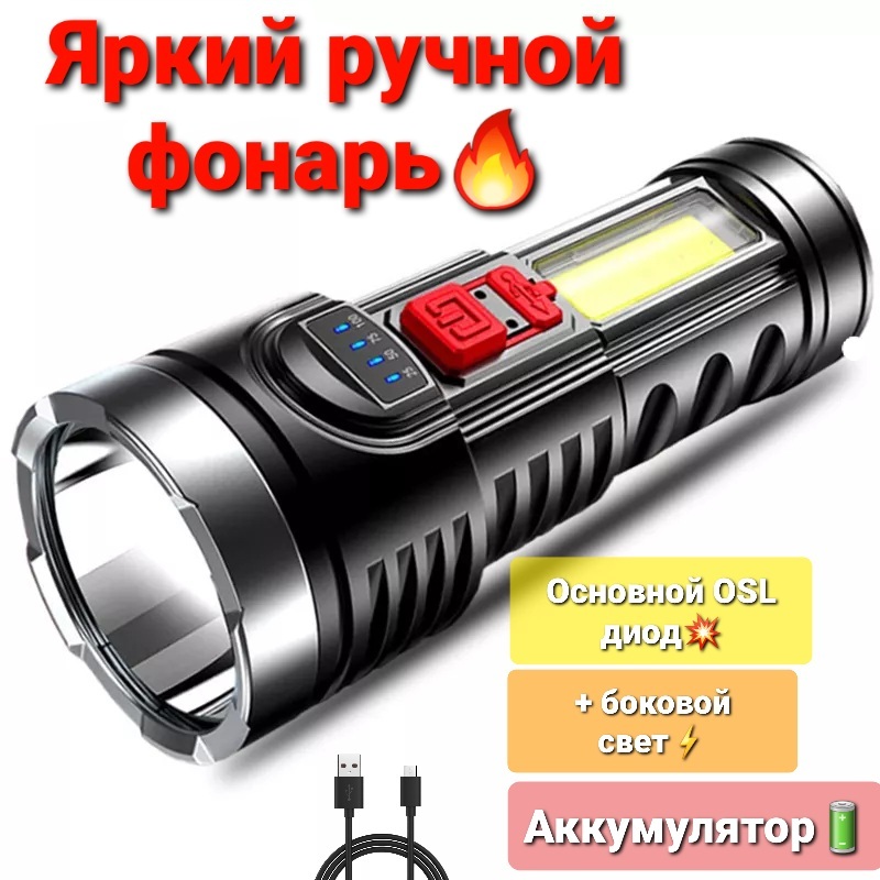 Фонарь аккумуляторный, ручной фонарик, фонарь светодиодный, зарядка от microUSB, боковая COB панель