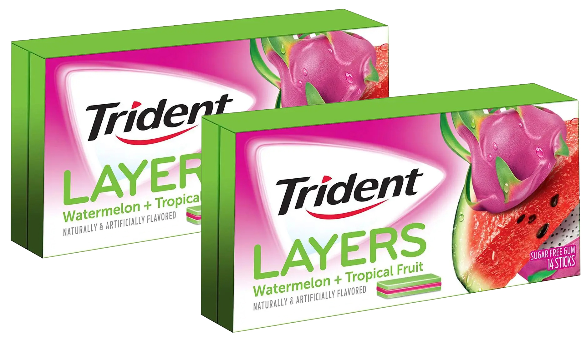 Жвачка Trident Layers Watermelon + Tropical Fruit (арбуз и тропические фрукты) (2 шт. по 29,8 гр.)