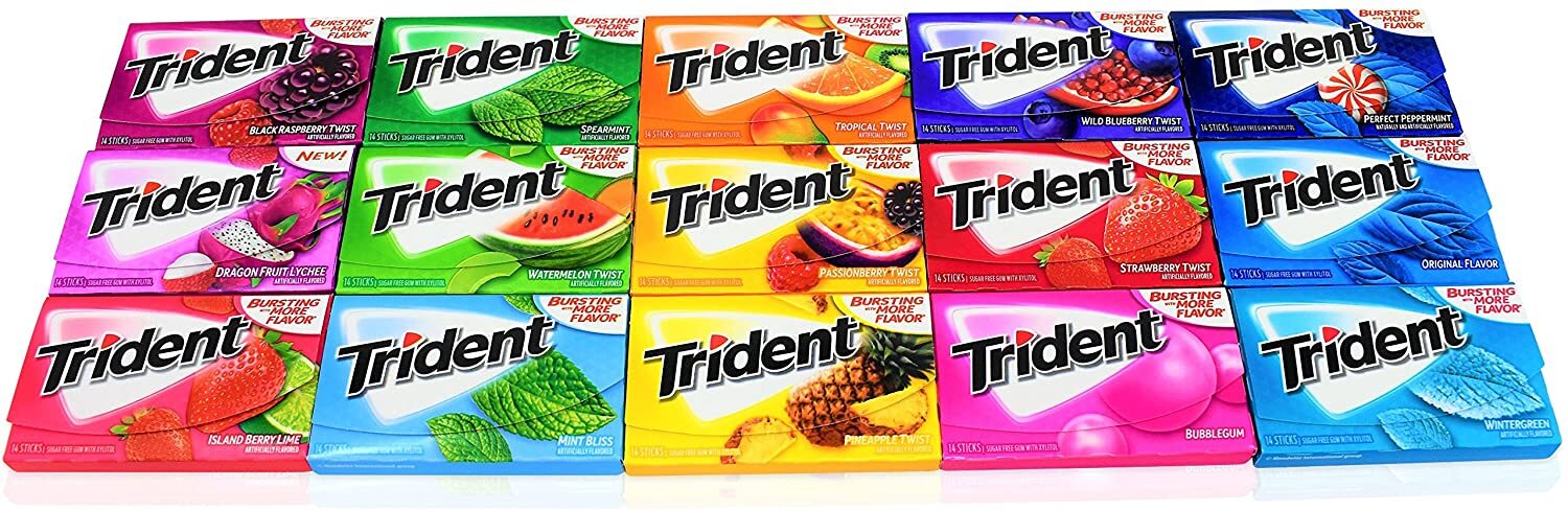 Trident 15 упаковок с разными вкусами жевательная резинка без сахара 14 жвачек в каждой 210 шт итого