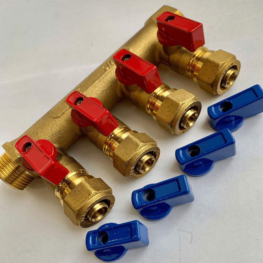 Коллектор 3/4x16x4 с шаровыми кранами 4 вых.для металлопластиковых труб , (красный.+ синий) TST
