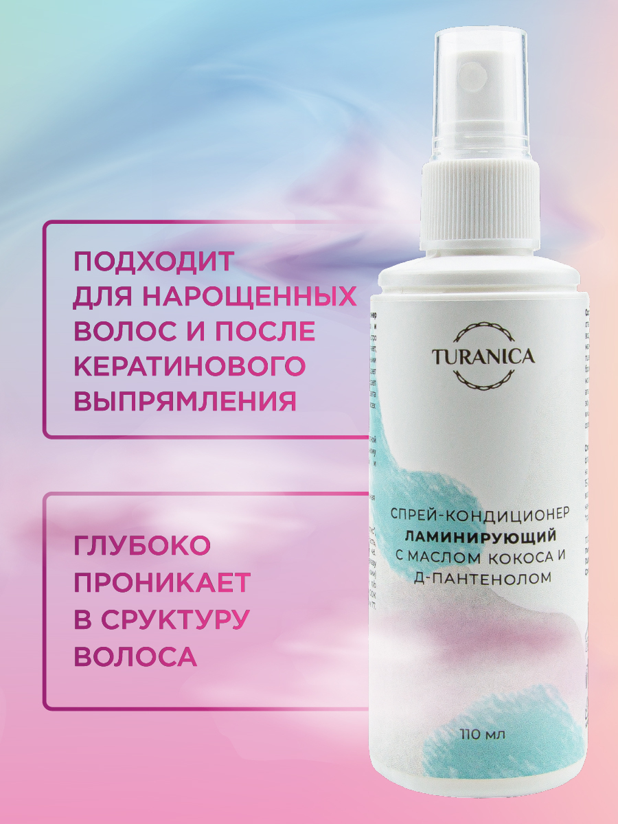 Спрей-кондиционер Ламинирующий TURANICA с маслом кокоса и д-пантенолом, 110 мл