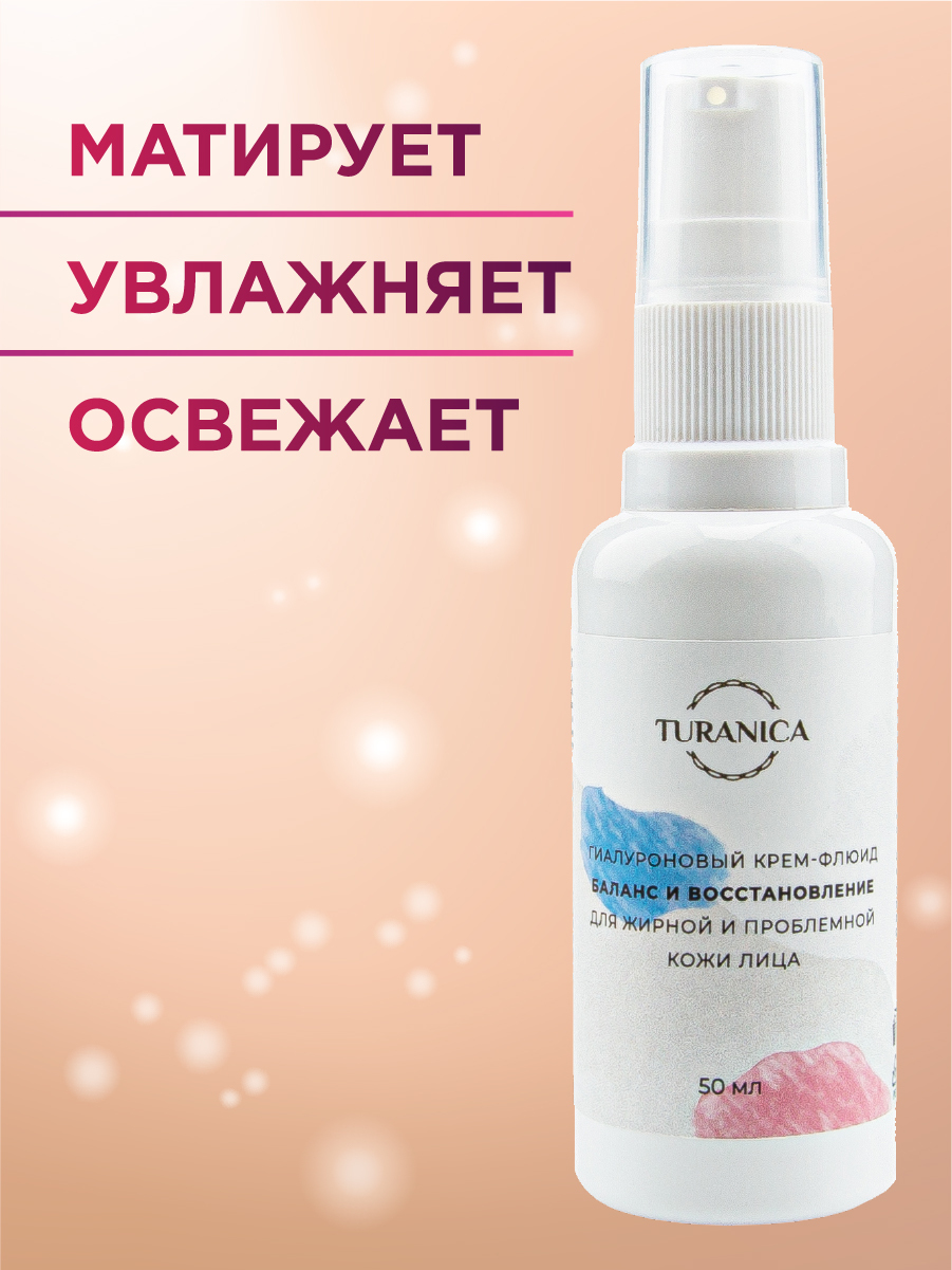 Гиалуроновый крем-флюид TURANICA Баланс и восстановление для жирной и проблемной кожи лица, 50 мл