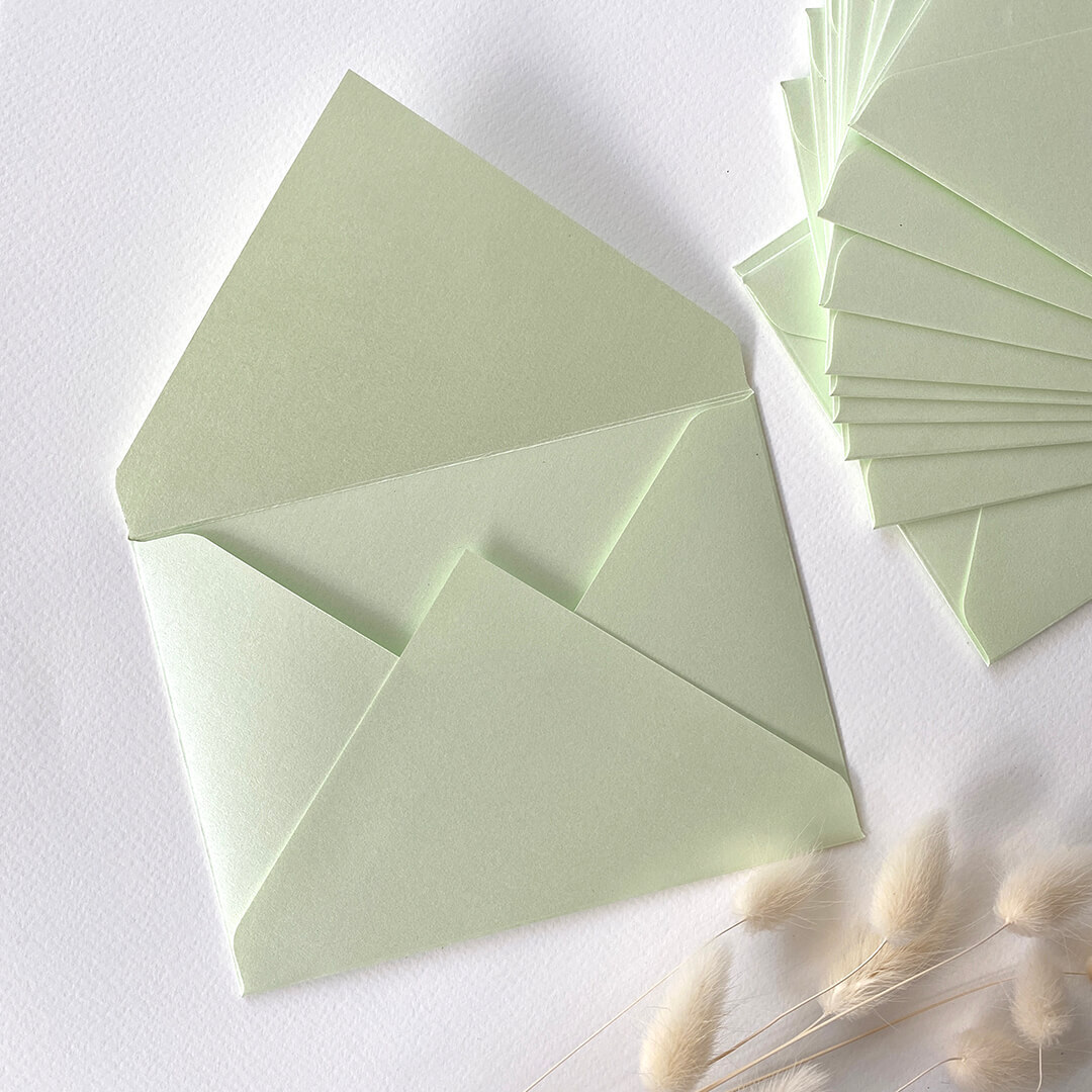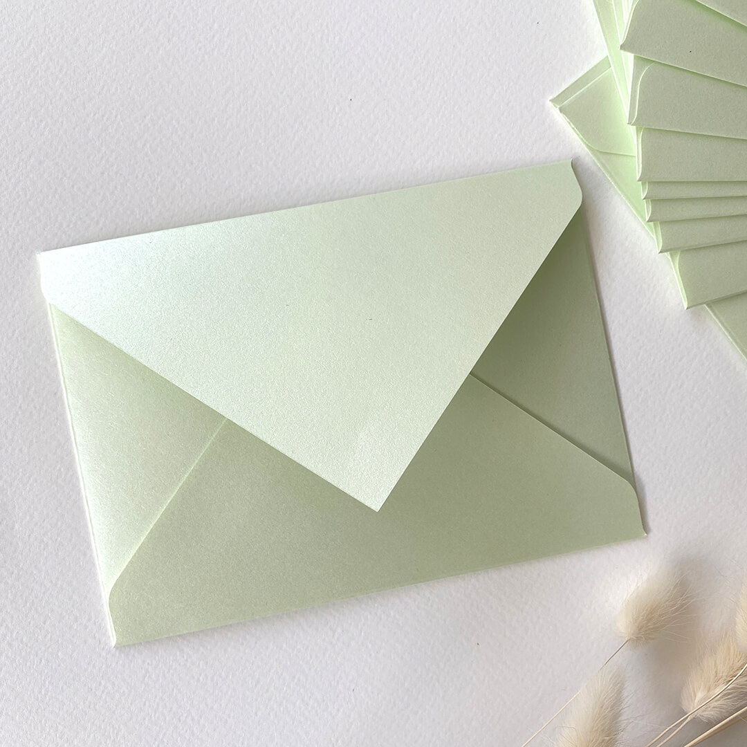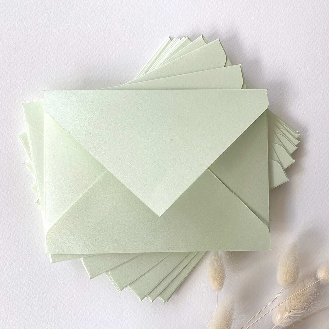 Перламутровые цветные конверты из дизайнерской бумаги (ментол) 10 шт.