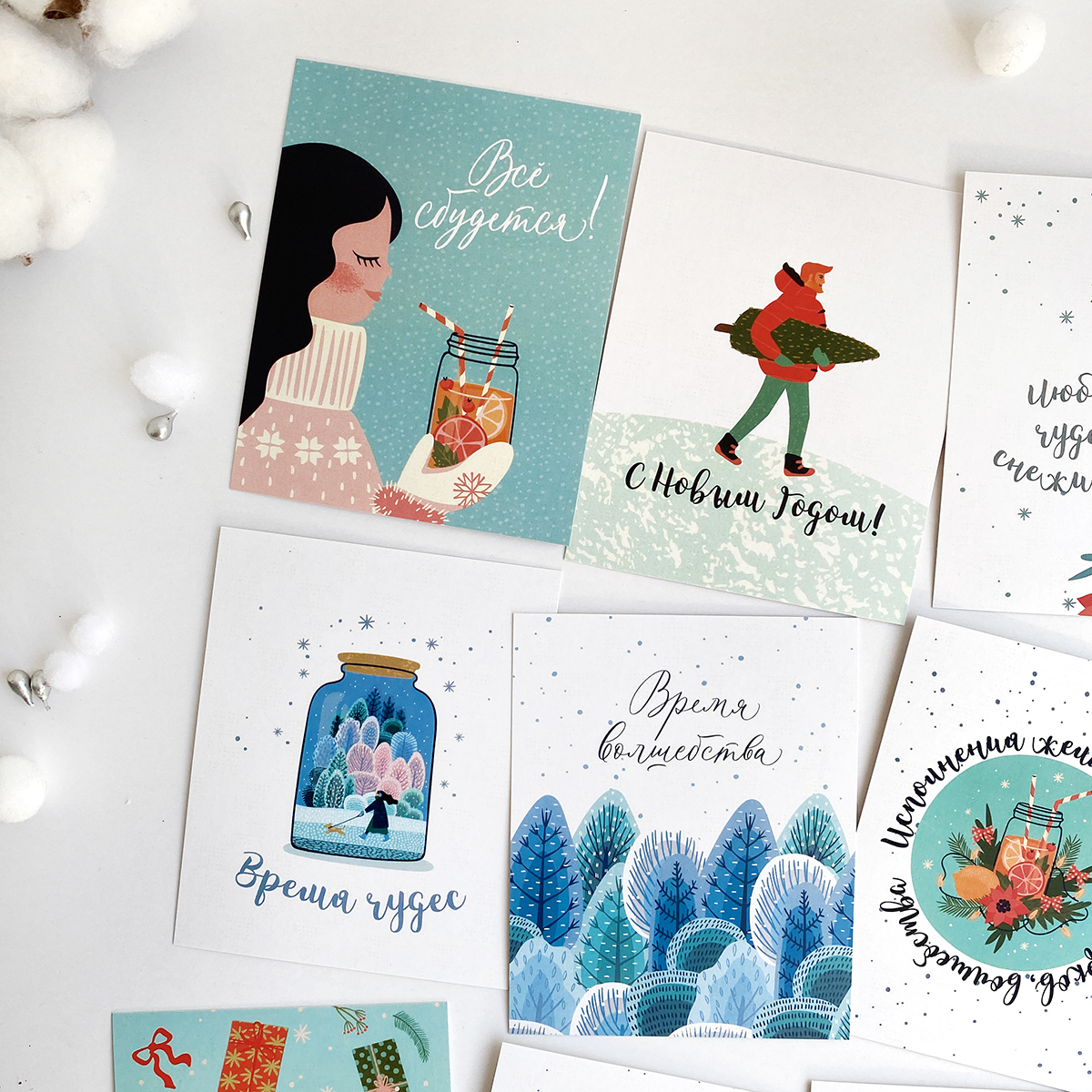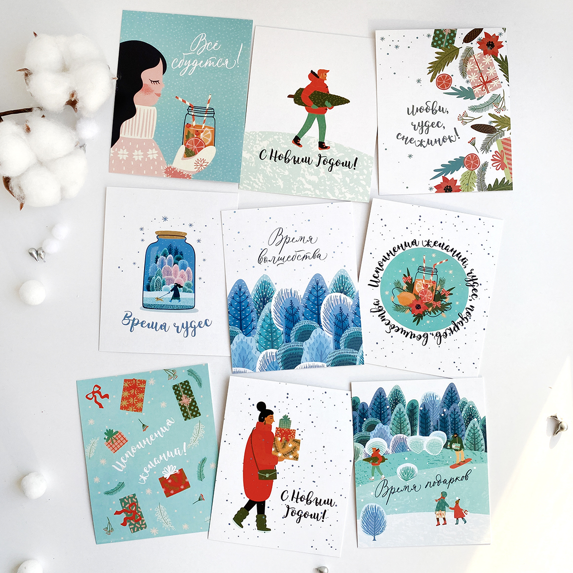 Открытки на день рождения "Просто счастья" в мини-формате, набор открыток (12 шт.), 8х10 см.