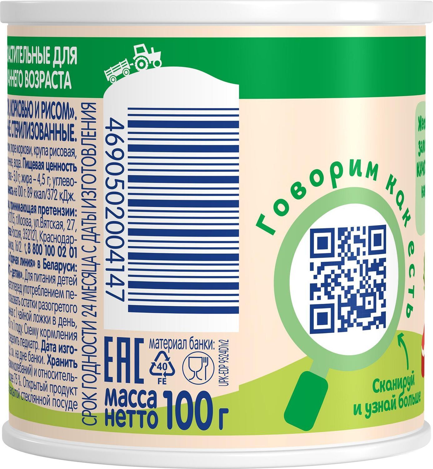 Тема пюре говядина с брокколи, морковью и рисом, 100 г