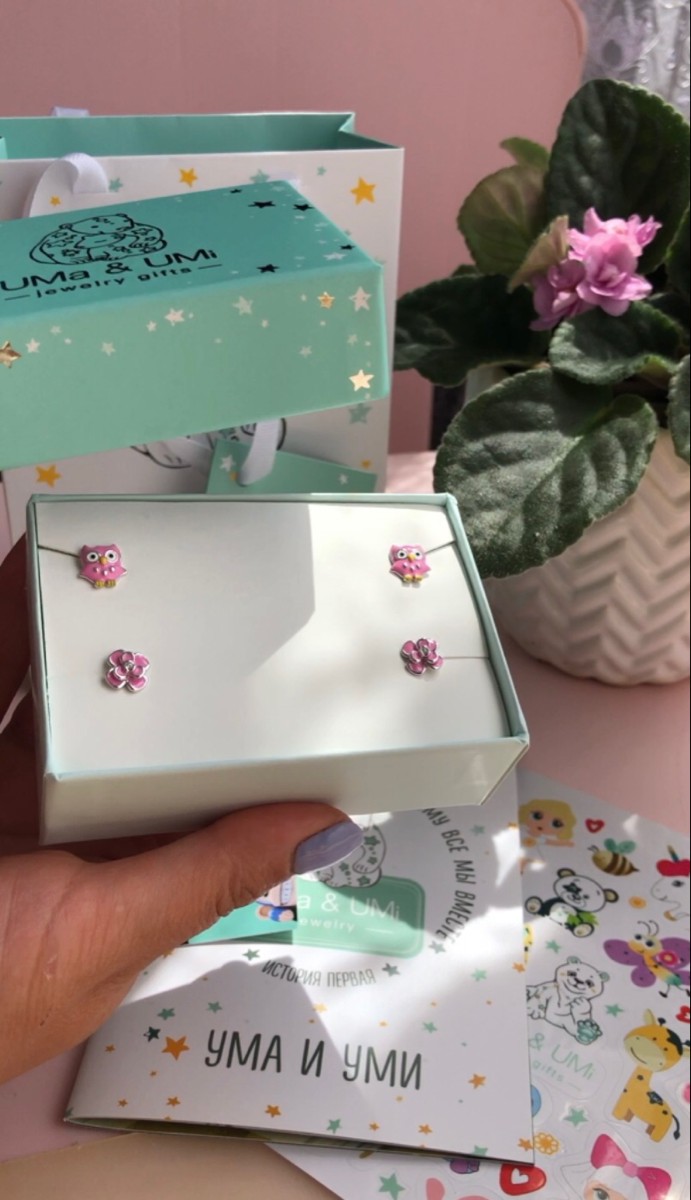UMa&UMi Серьги Детские Серебряные пусеты UMaUMi Сова UMI Fly /подарок девочке/ пусеты c эмалью
