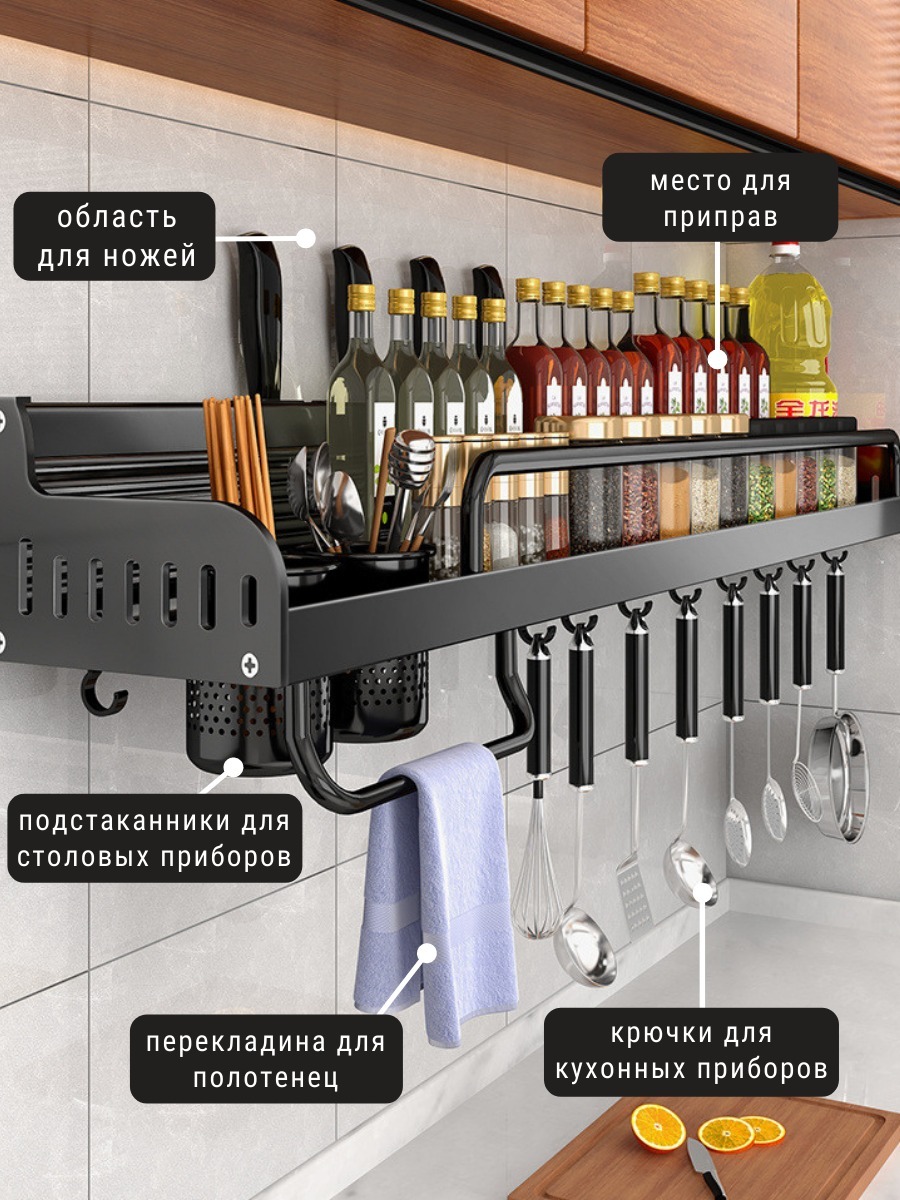 Держатель кухонный, Полка кухонная для кухонной утвари, для полотенец UNI-SHOP, 50 см х 14 см х 9 см