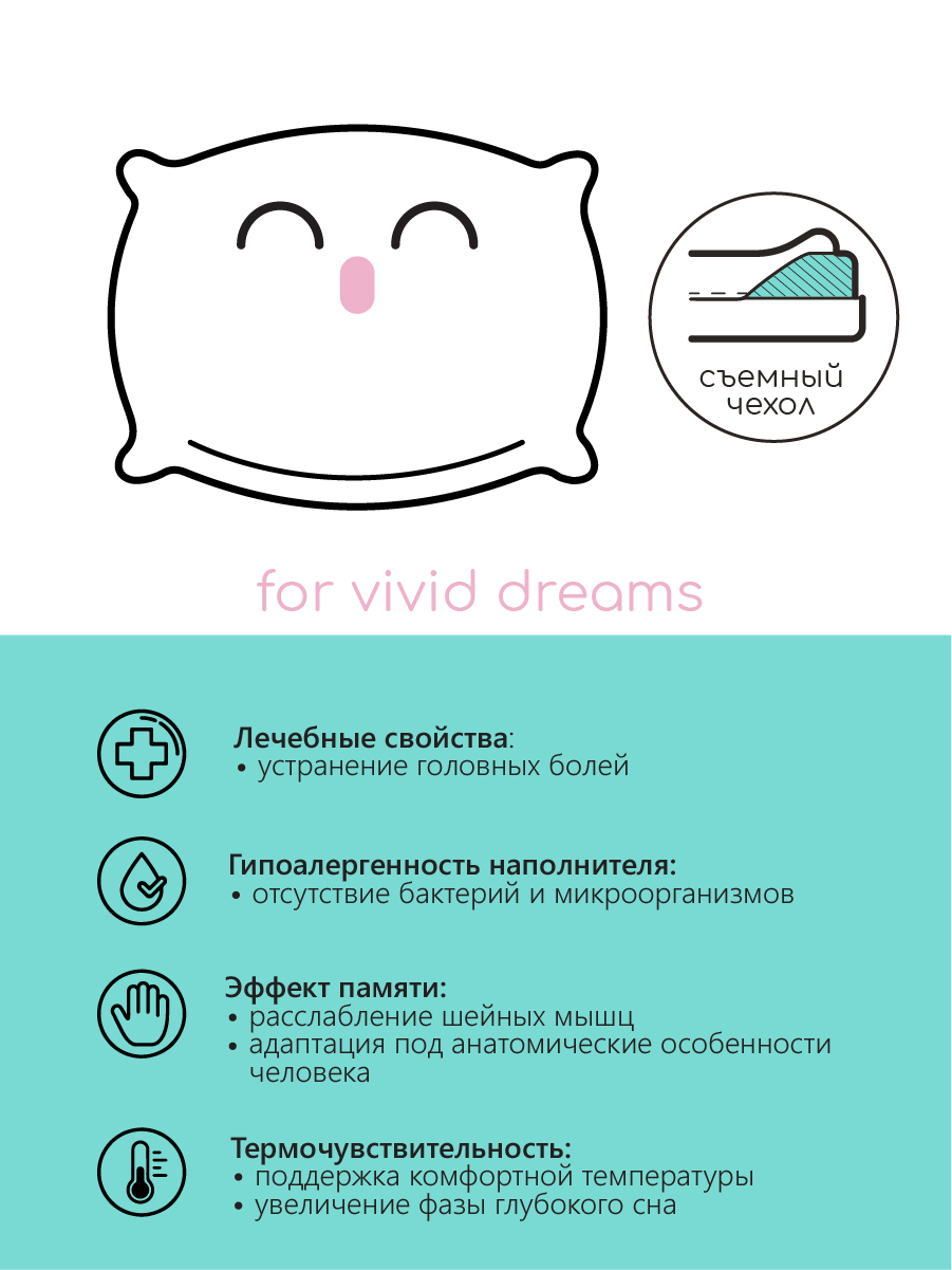 Ортопедическая подушка 30x50см, Uniqcute Memory Wave Mini п/216, высота 10 см