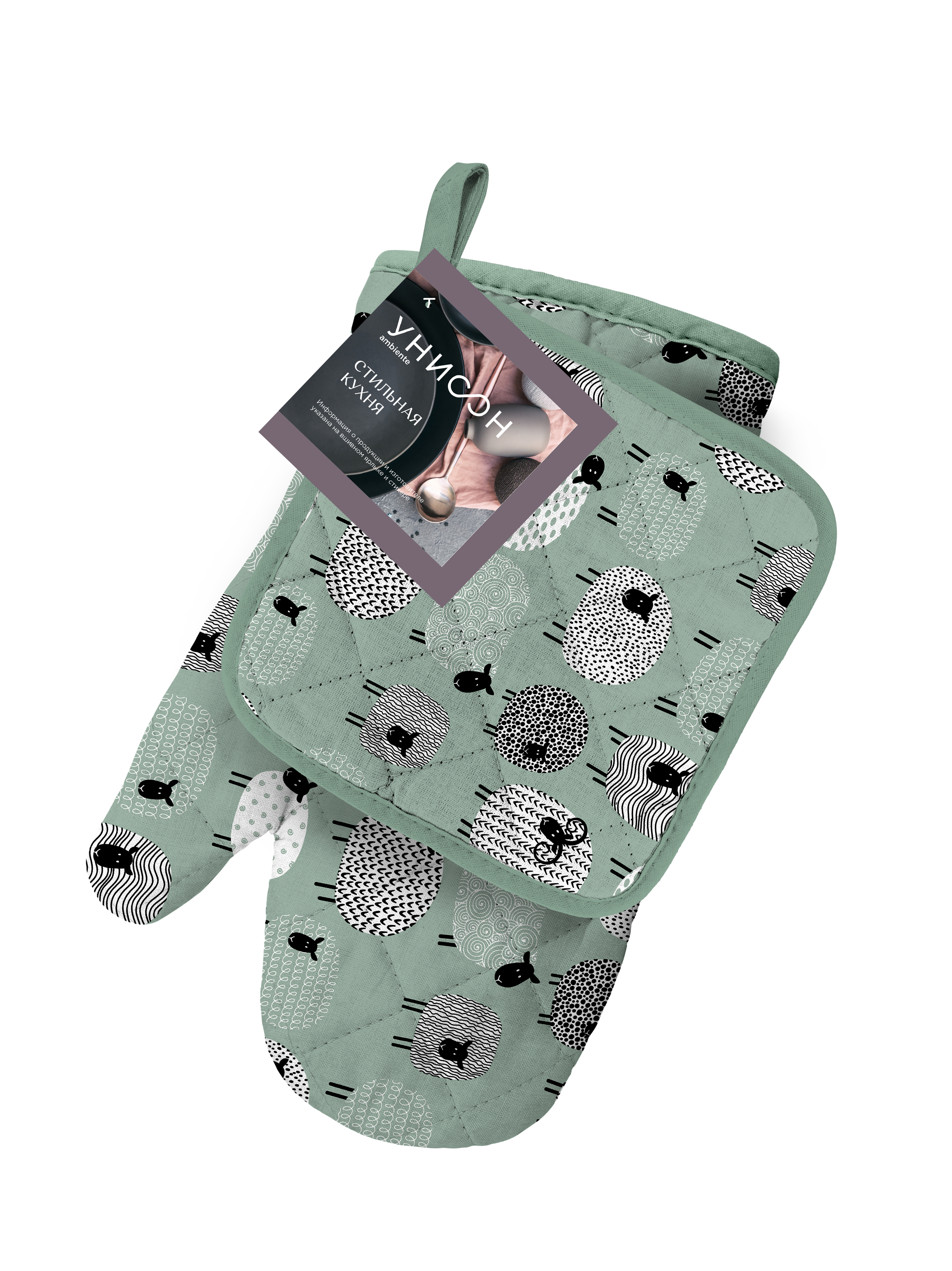 Комплект кухонный рогожка (прихватка 18х18, прихватка-рукавица 18х28) "Унисон" рис 33020-1 BBQ