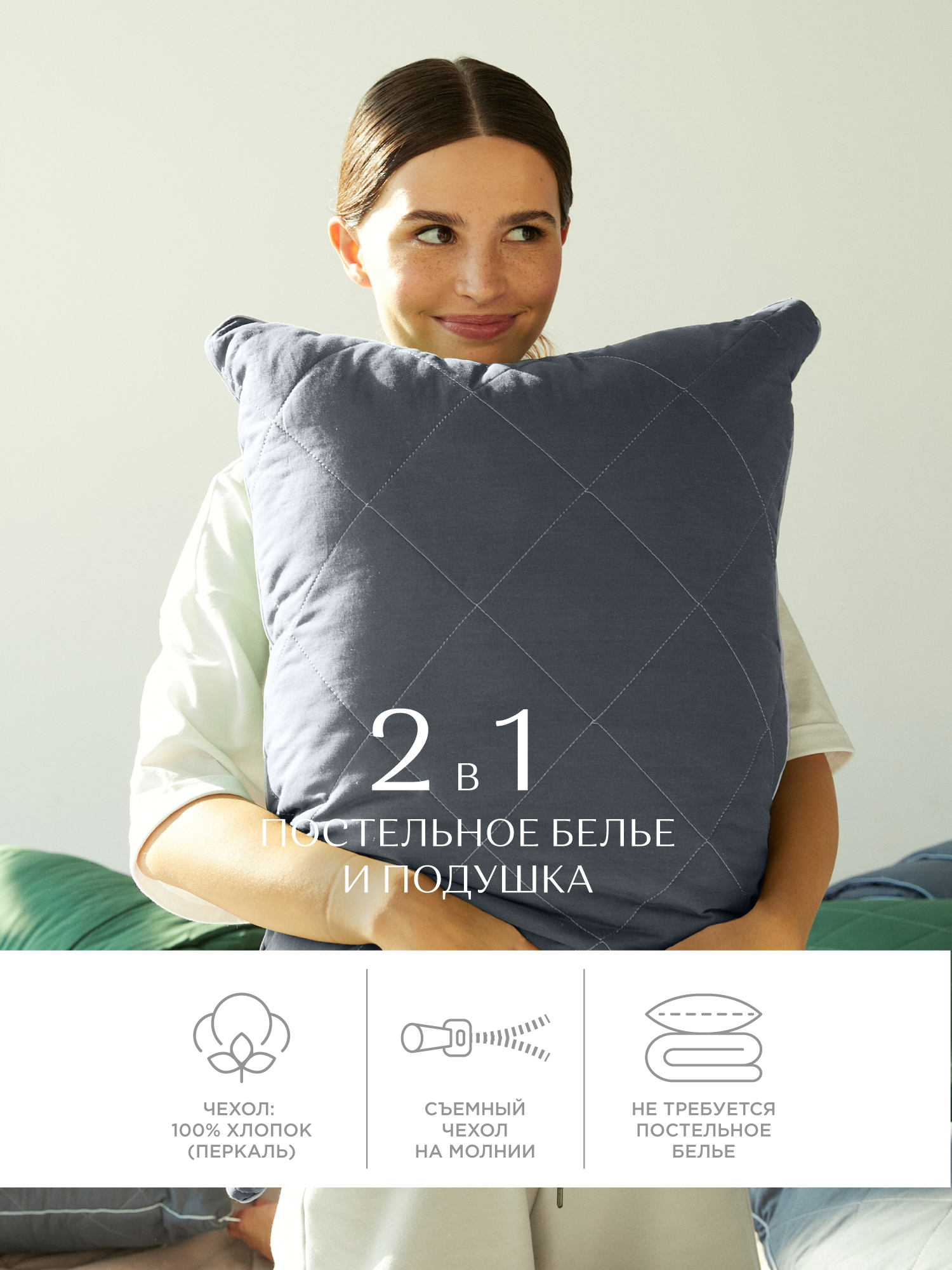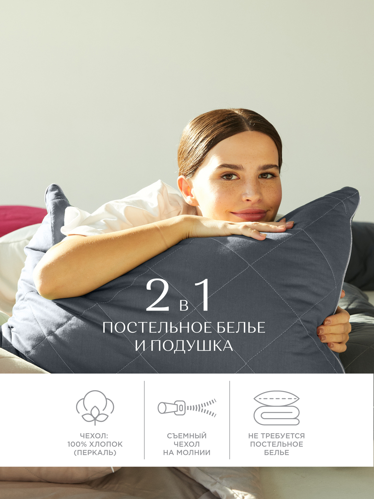 Подушка для сна / подушка 50*70 / подушка чехол из 100% хлопка "Унисон" Wow 50х70 перкаль 86160-13 графит