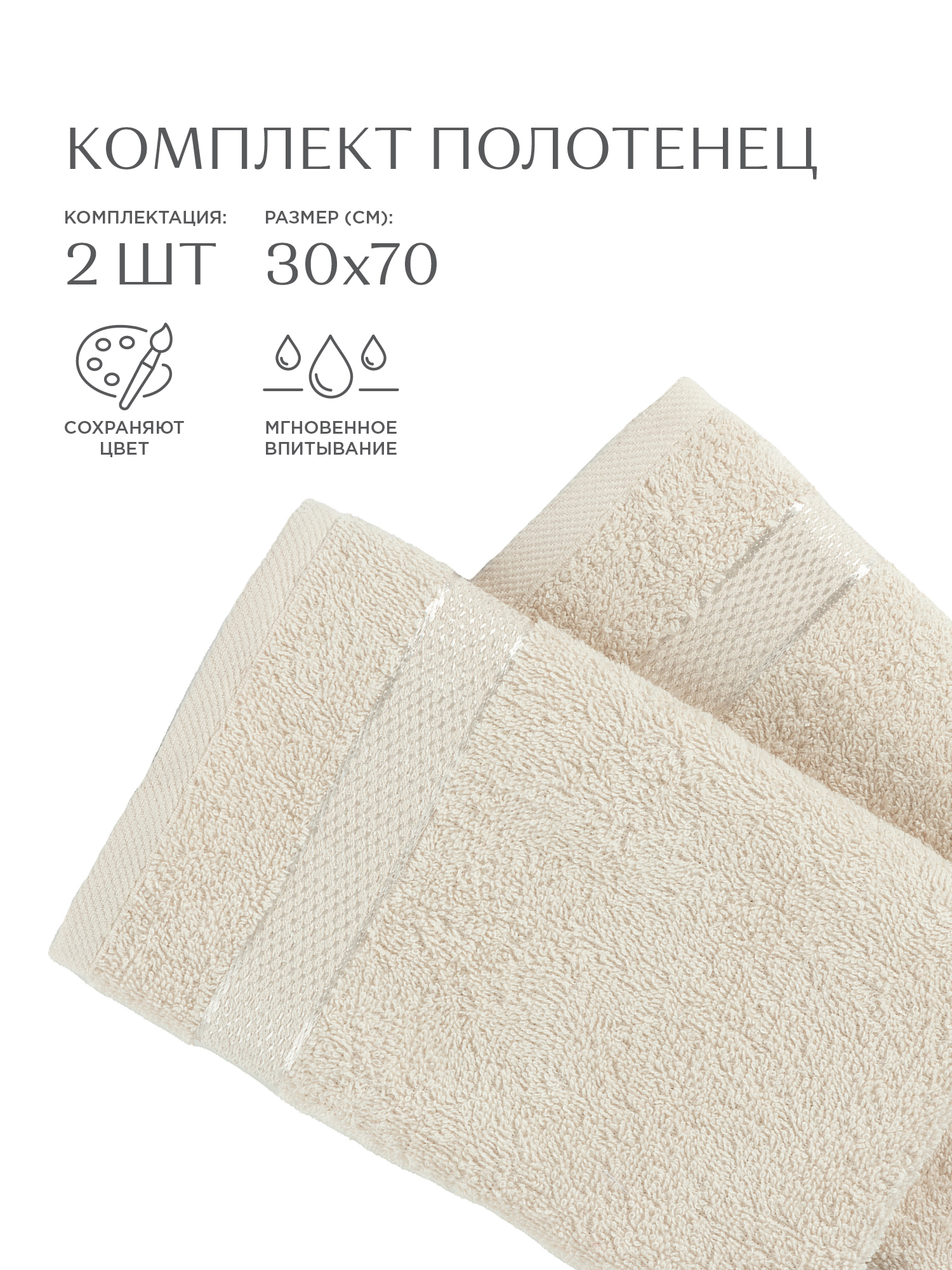 Комплект из 2х махровых полотенец / полотенце банное / полотенце / полотенце махровое (30х70х2шт) "Унисон" Ritz светло-бежевый