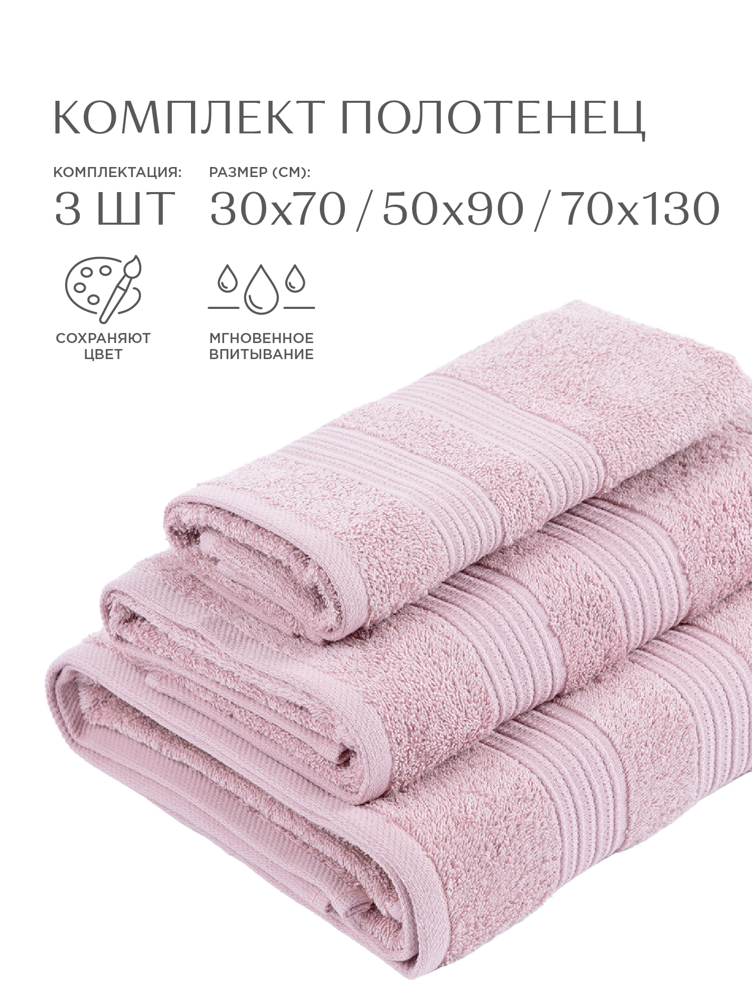 Комплект из 3х махровых полотенец / полотенце банное / полотенце / полотенце махровое (50х90;50х90;70х130) "Унисон" Raffle пыльная роза