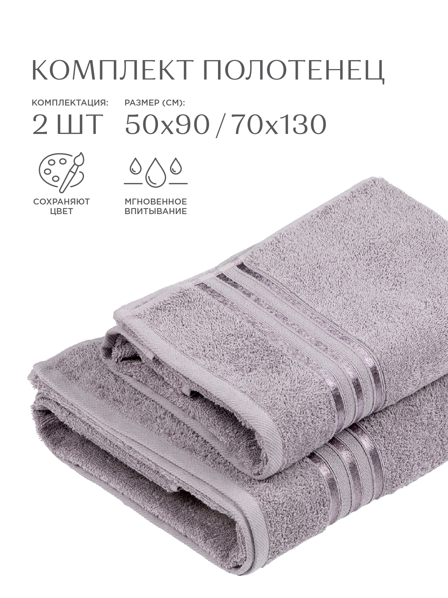Комплект из 2х махровых полотенец / полотенце банное / полотенце / полотенце махровое (50х90; 70х130) "Унисон" Элегант сиреневый