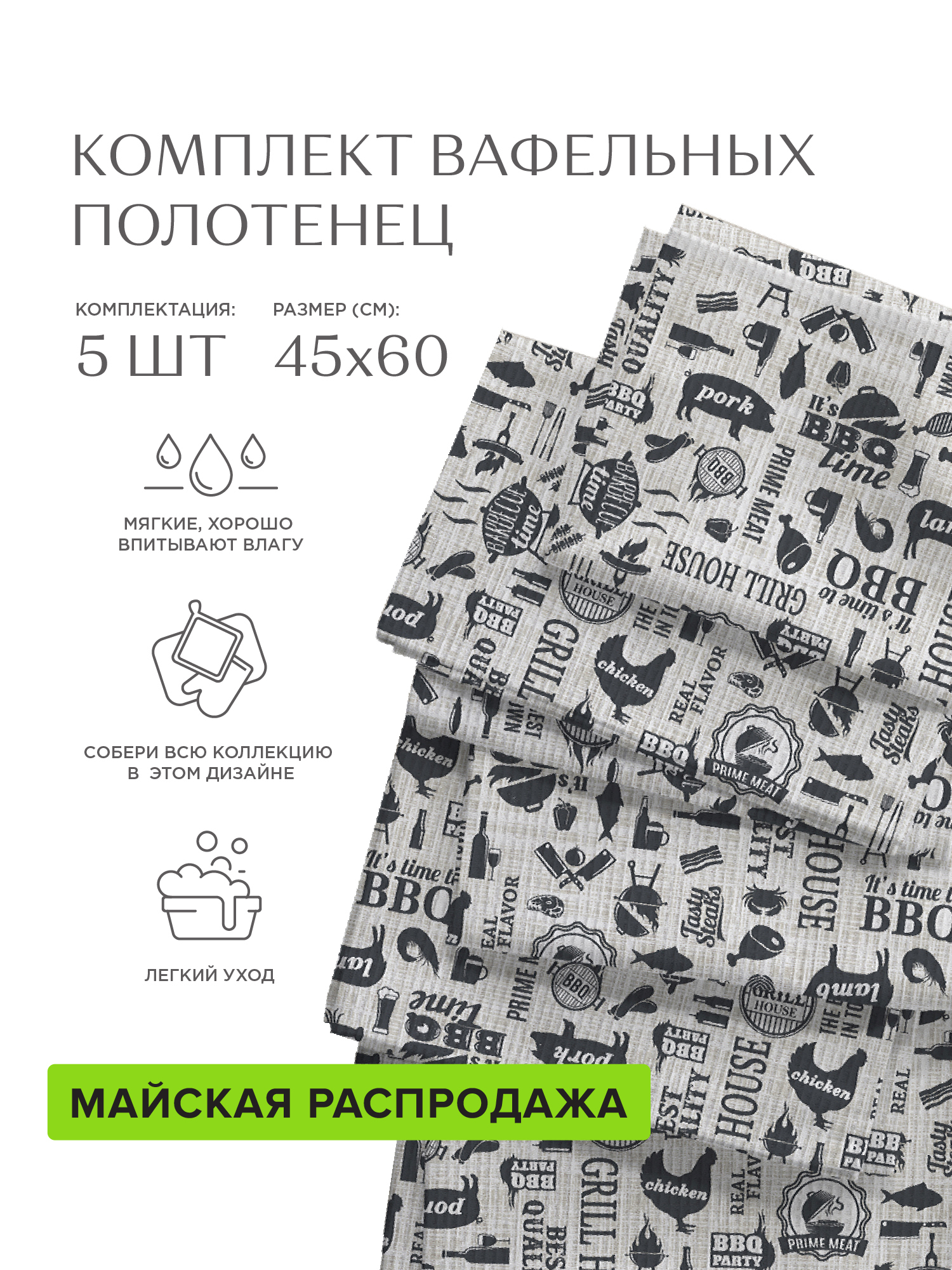 Набор полотенец для лица, рук или ног Унисон Love Хлопок 45x60 см, 5 шт.