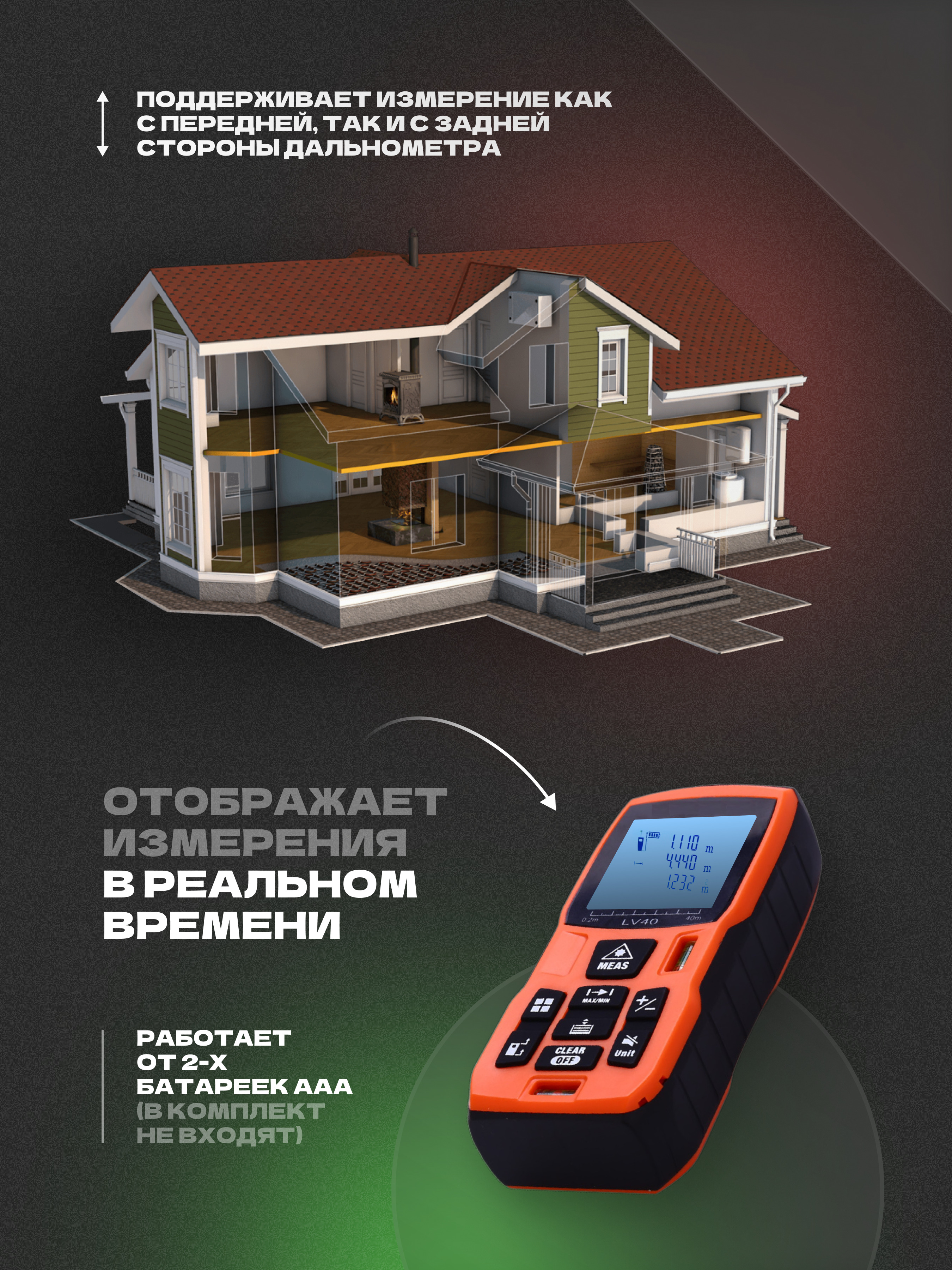 Лазерная рулетка 40 м LOMVUM L55 лазерный дальномер, дальномер лазерный