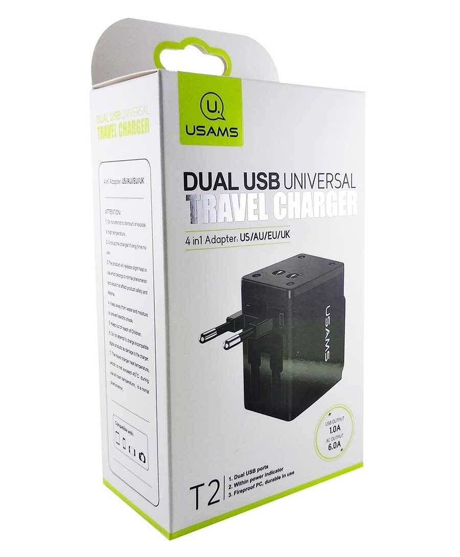 Зарядное устройство USAMS US-CC044 T2 Dual USB Universal Travel Charger(4 in 1 Adapter,US/AU/EU/UK)