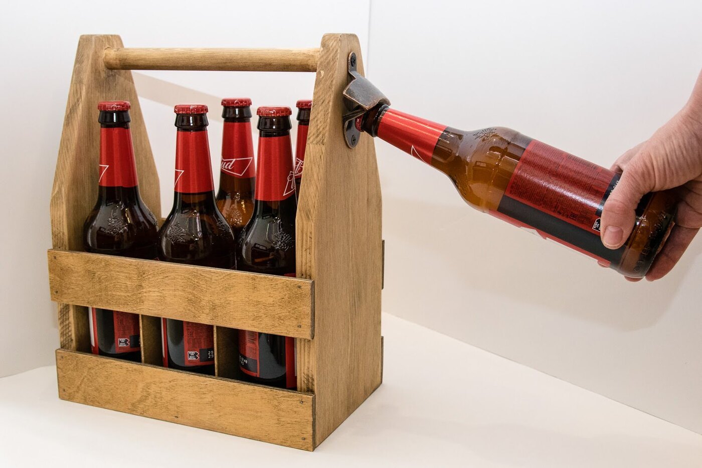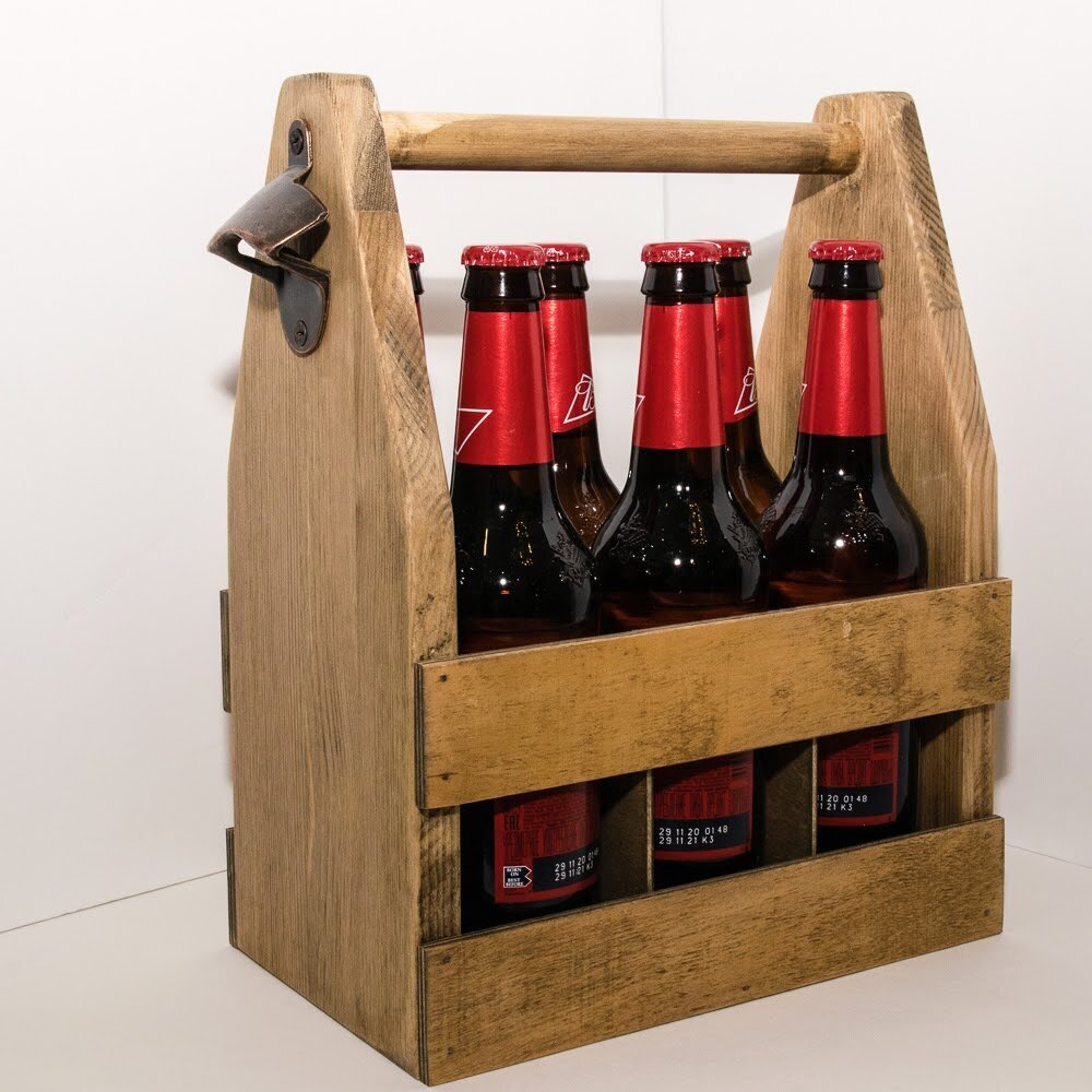 Бутылочница для 6 бутылок пива. Переноска с открывалкой или подставка для бутылок.