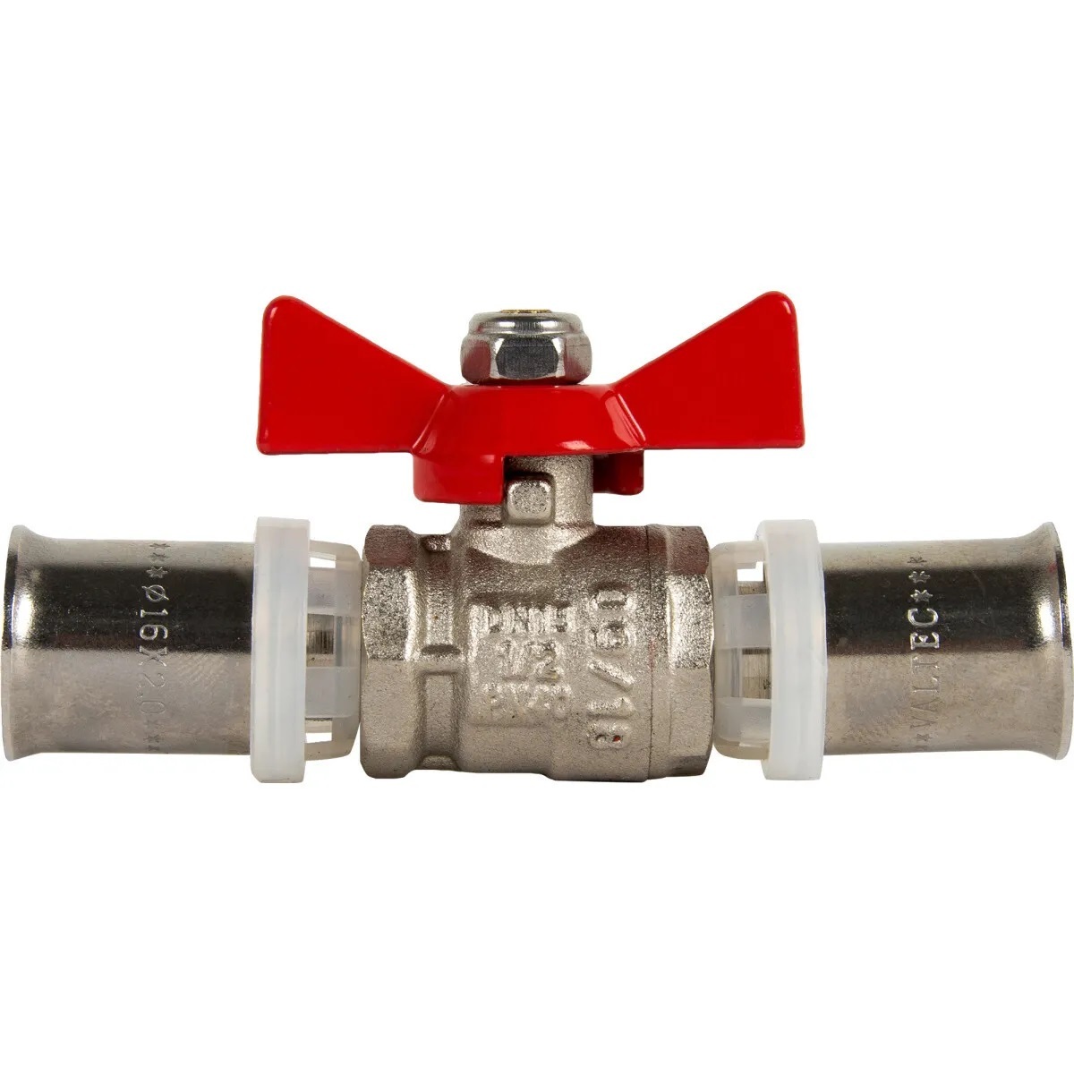 Кран шаровый Valtec 3/4" В-Н Base, бабочка белая, с полусгоном,16бар, t-150*C никель