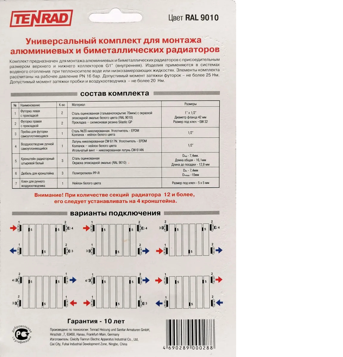 Монтажный комплект для радиатора с кронштейнами, комплект для монтажа