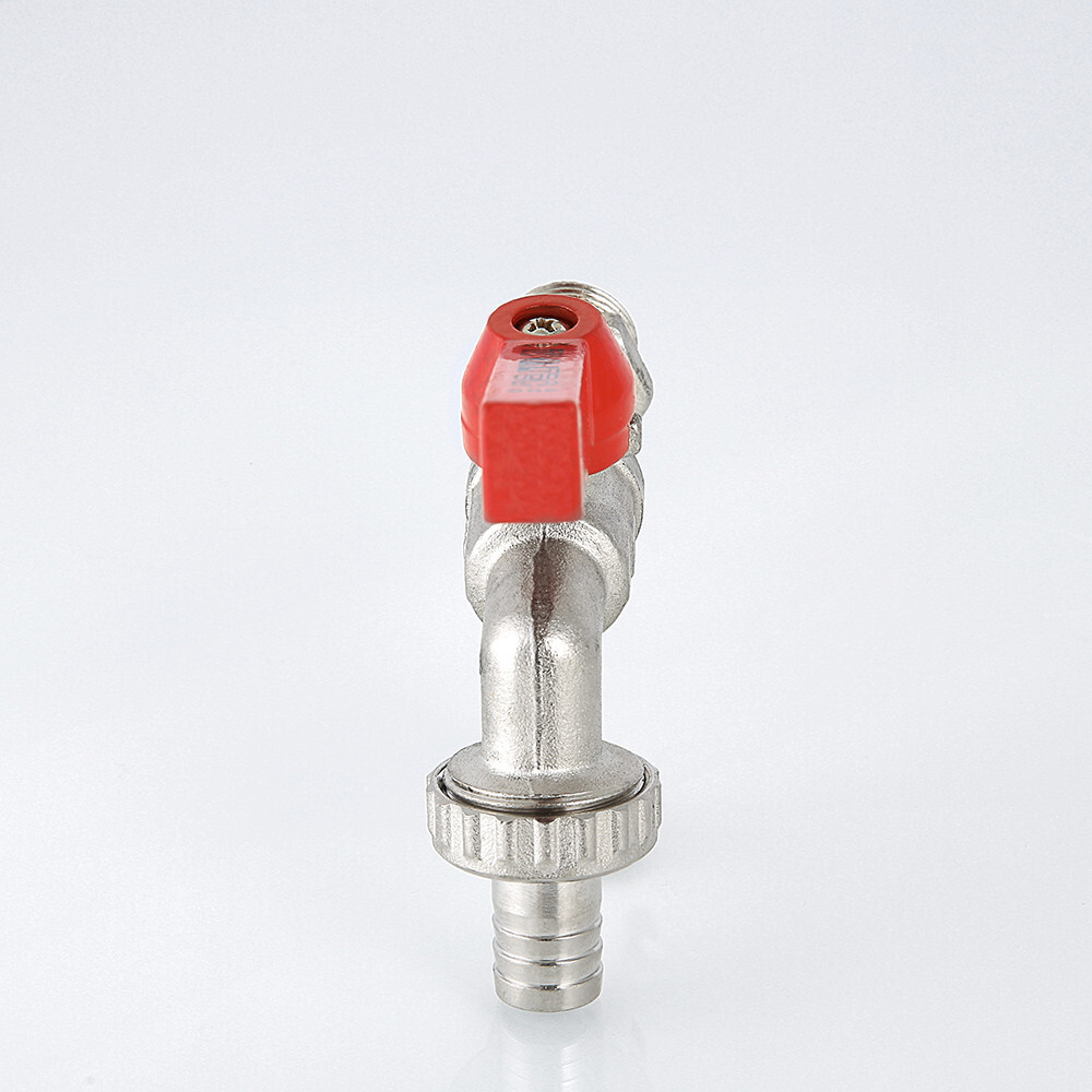 Кран шаровый Valtec 3/4" НР со штуцером, ручка 10бар, t-75*C никель