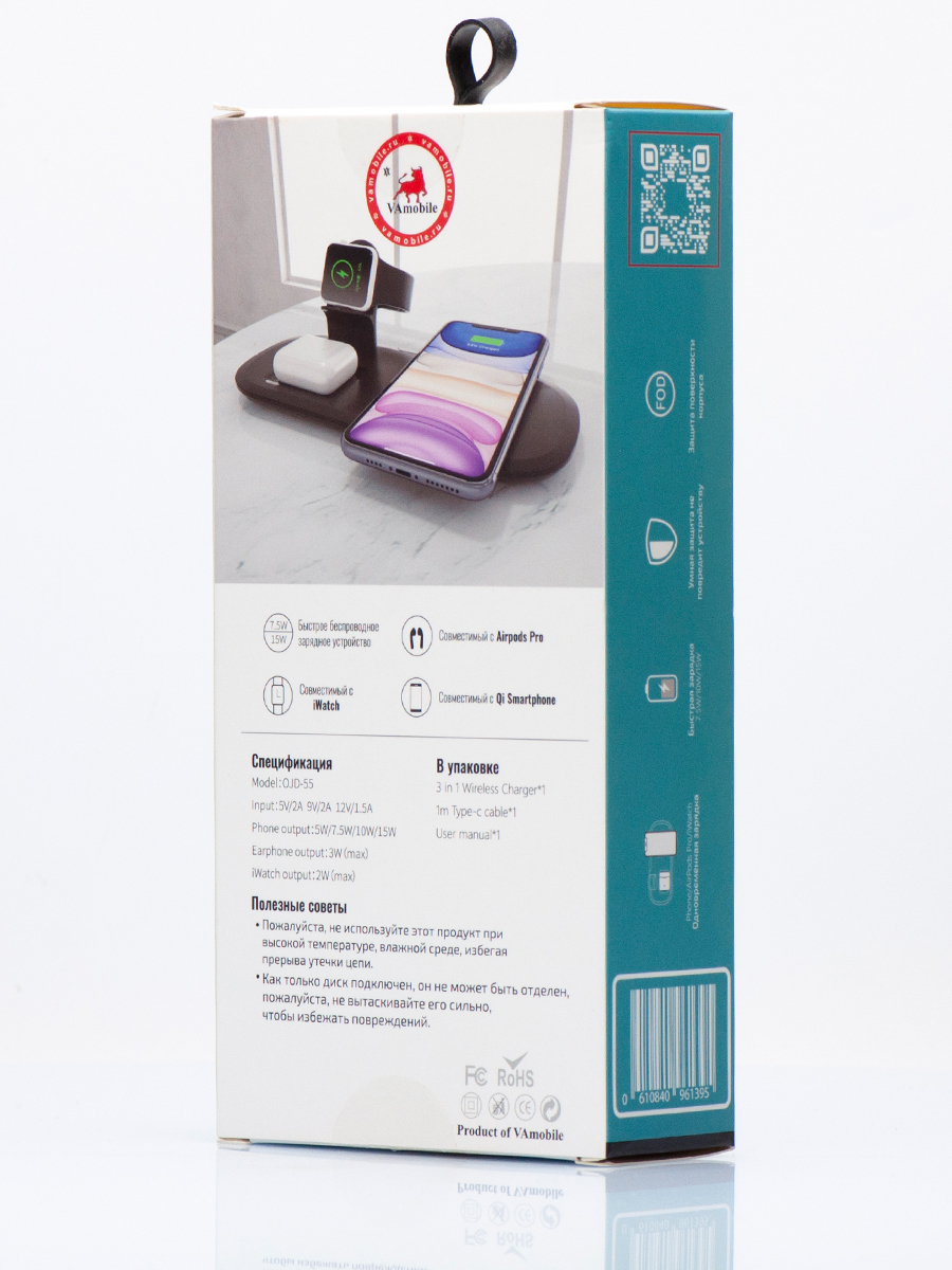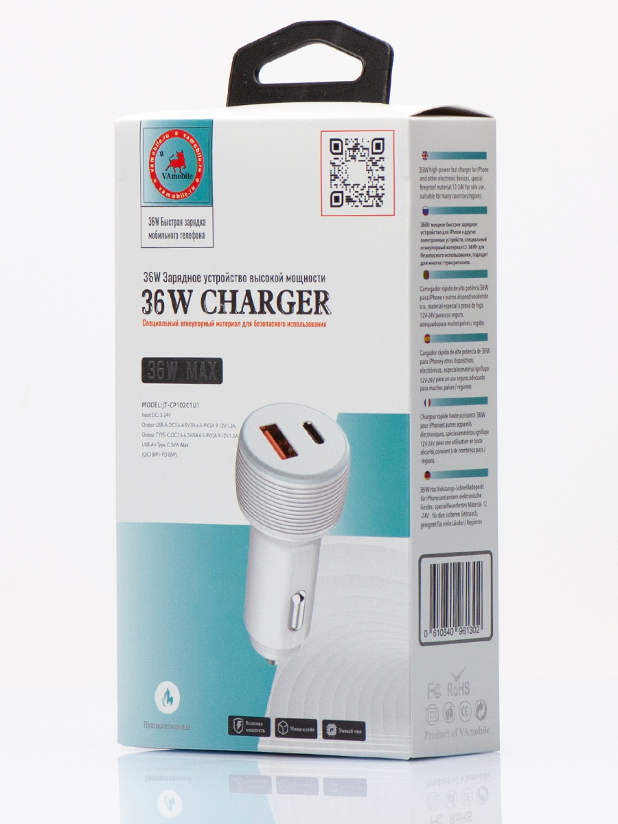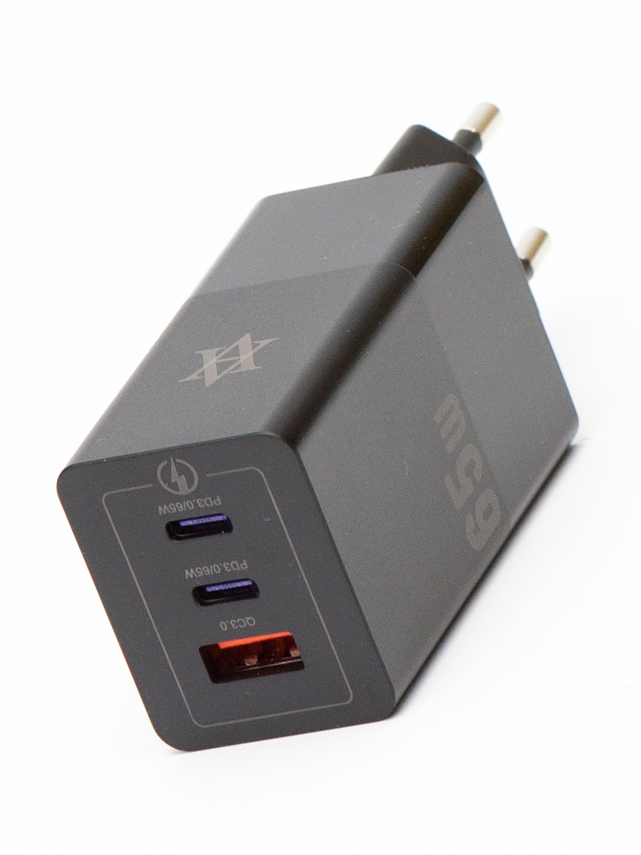 Сетевое зарядное устройство VAmobile, 65W, 1 USB, 2 PD, огнеупорный материал, цвет: черный