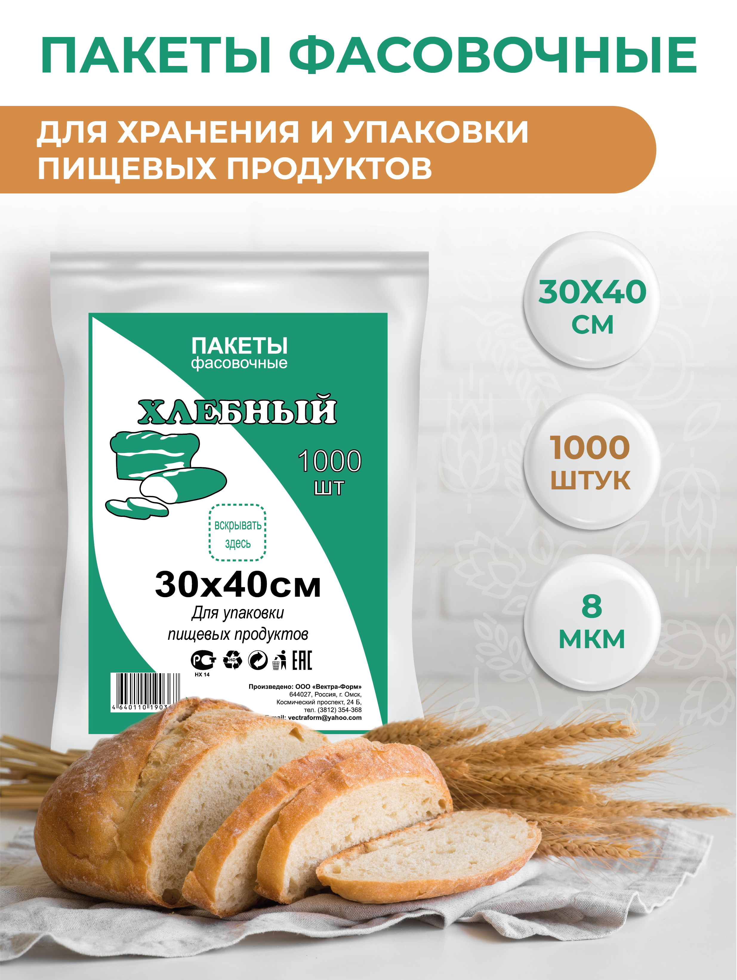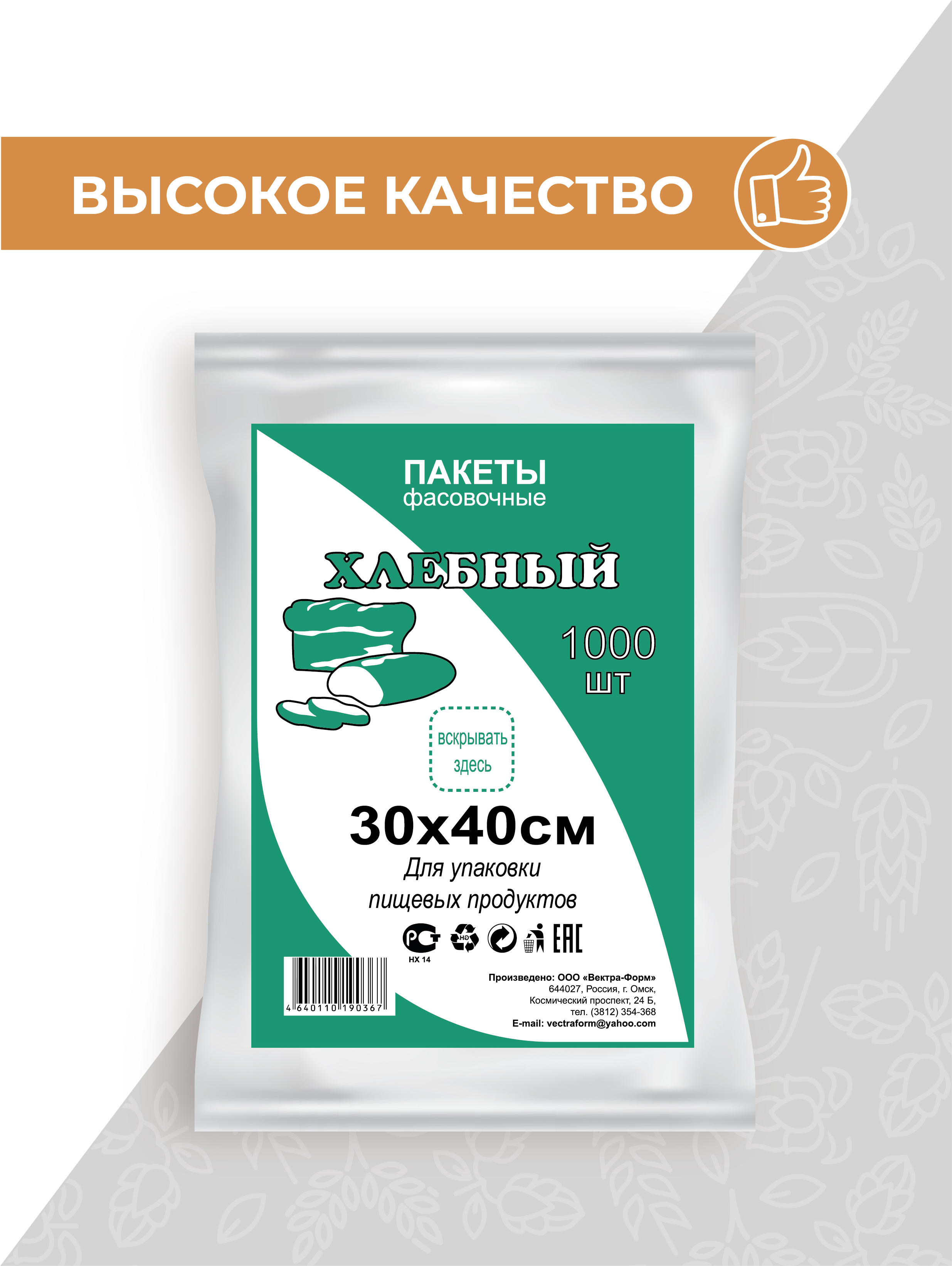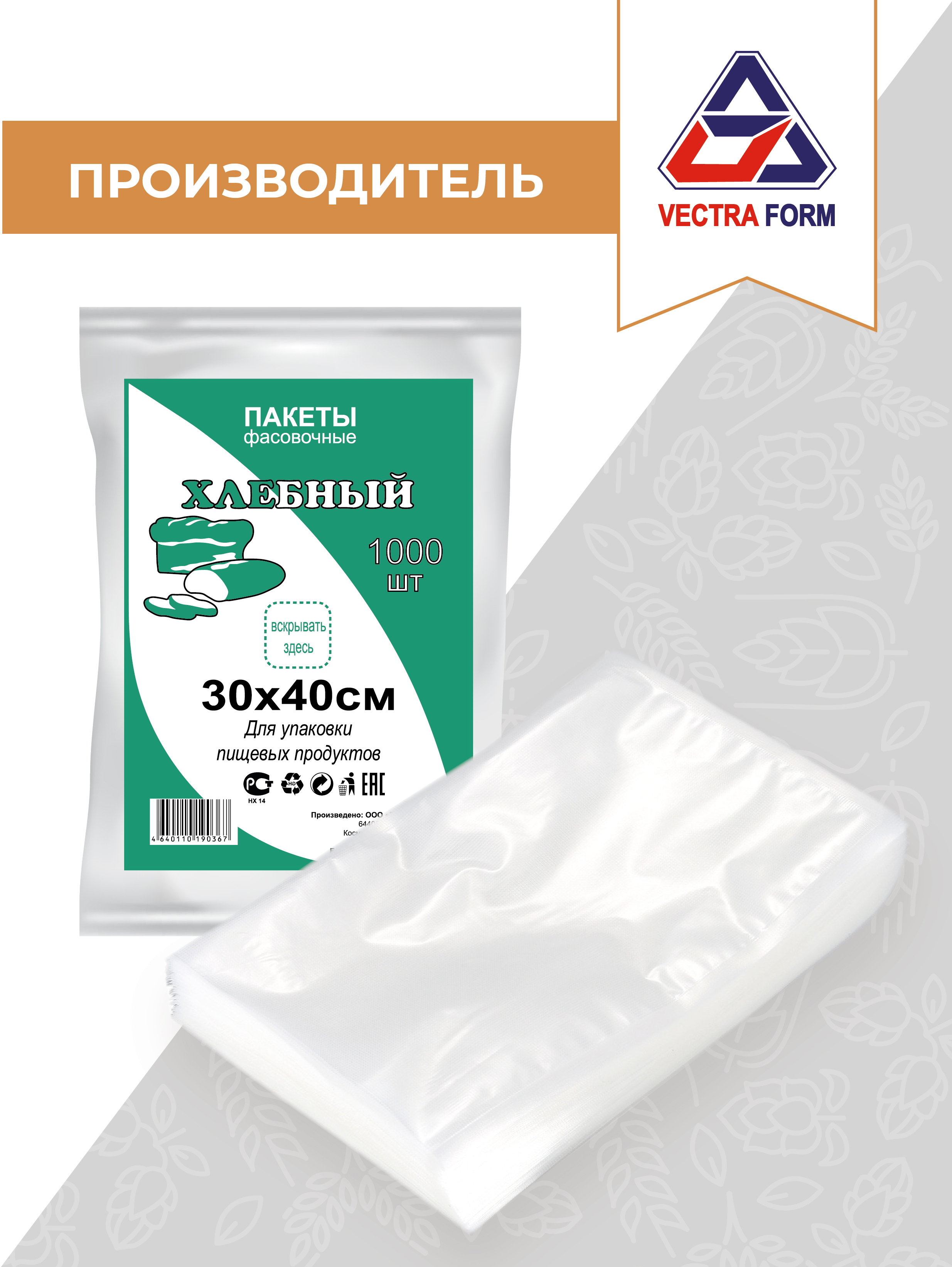 Пакеты фасовочные VectraForm, 30х40 см, 1000 шт, 1000 уп.