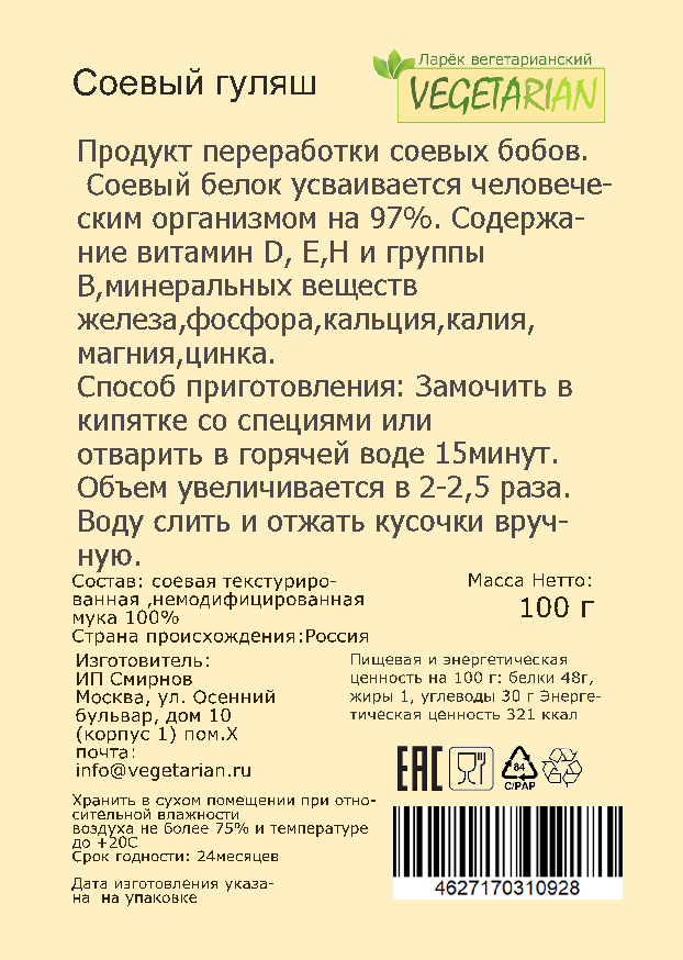 VEGETARIAN / Соевое мясо Ассорти (фарш, гуляш, шницель)