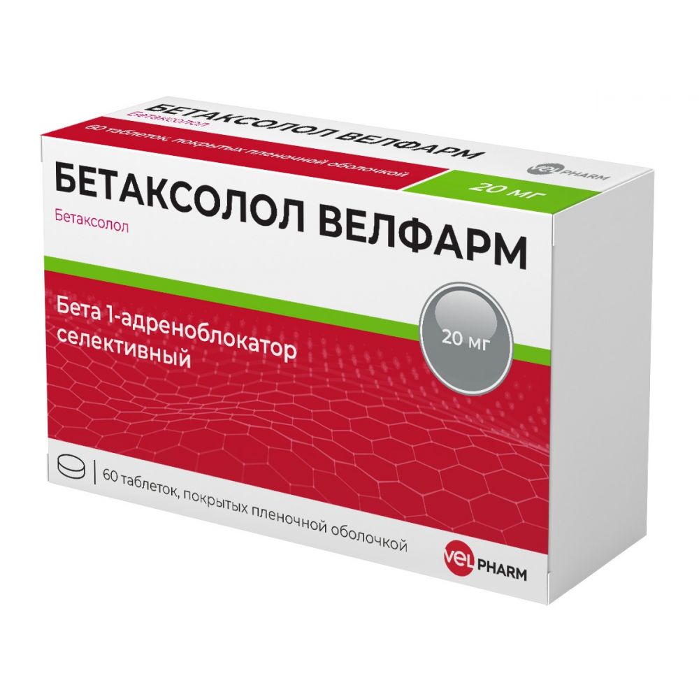 Бетаксолол велфарм 20 мг 60 шт. блистер таблетки, покрытые пленочной оболочкой