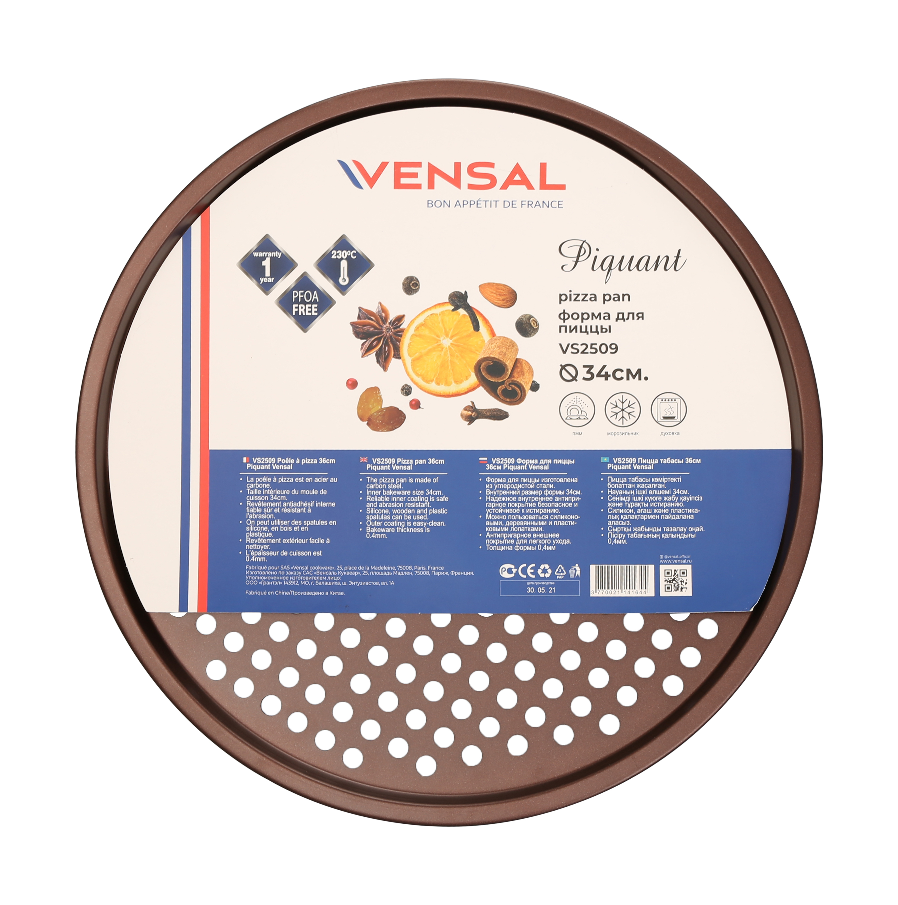 Форма для пиццы VENSAL, 34 см х 34 см, 1 шт