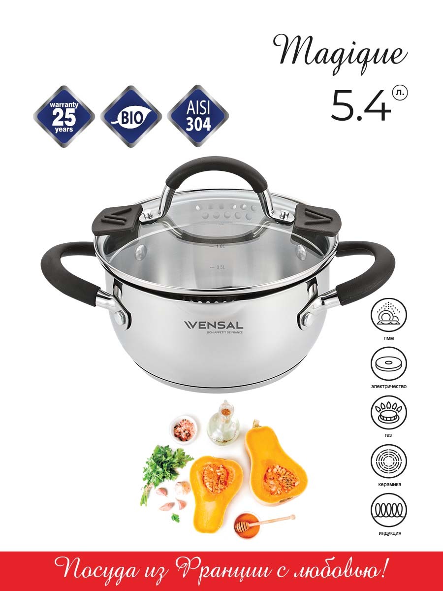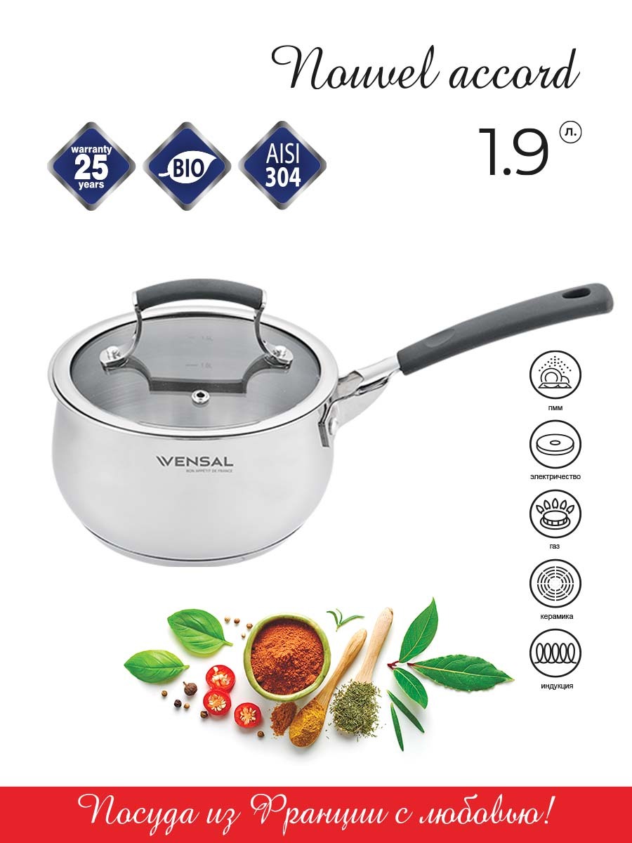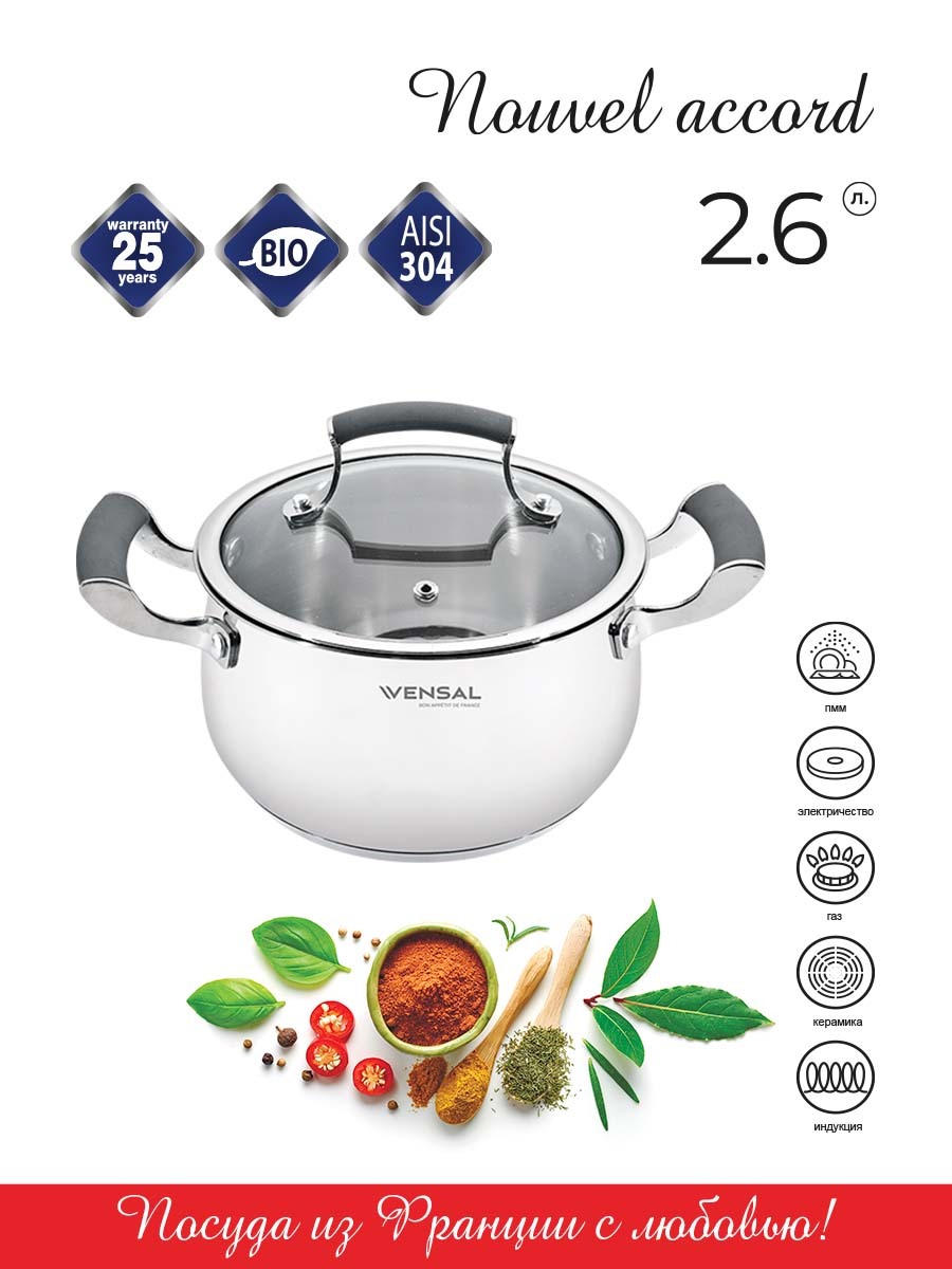 Кастрюля VENSAL, Нержавеющая сталь, 2,6 л