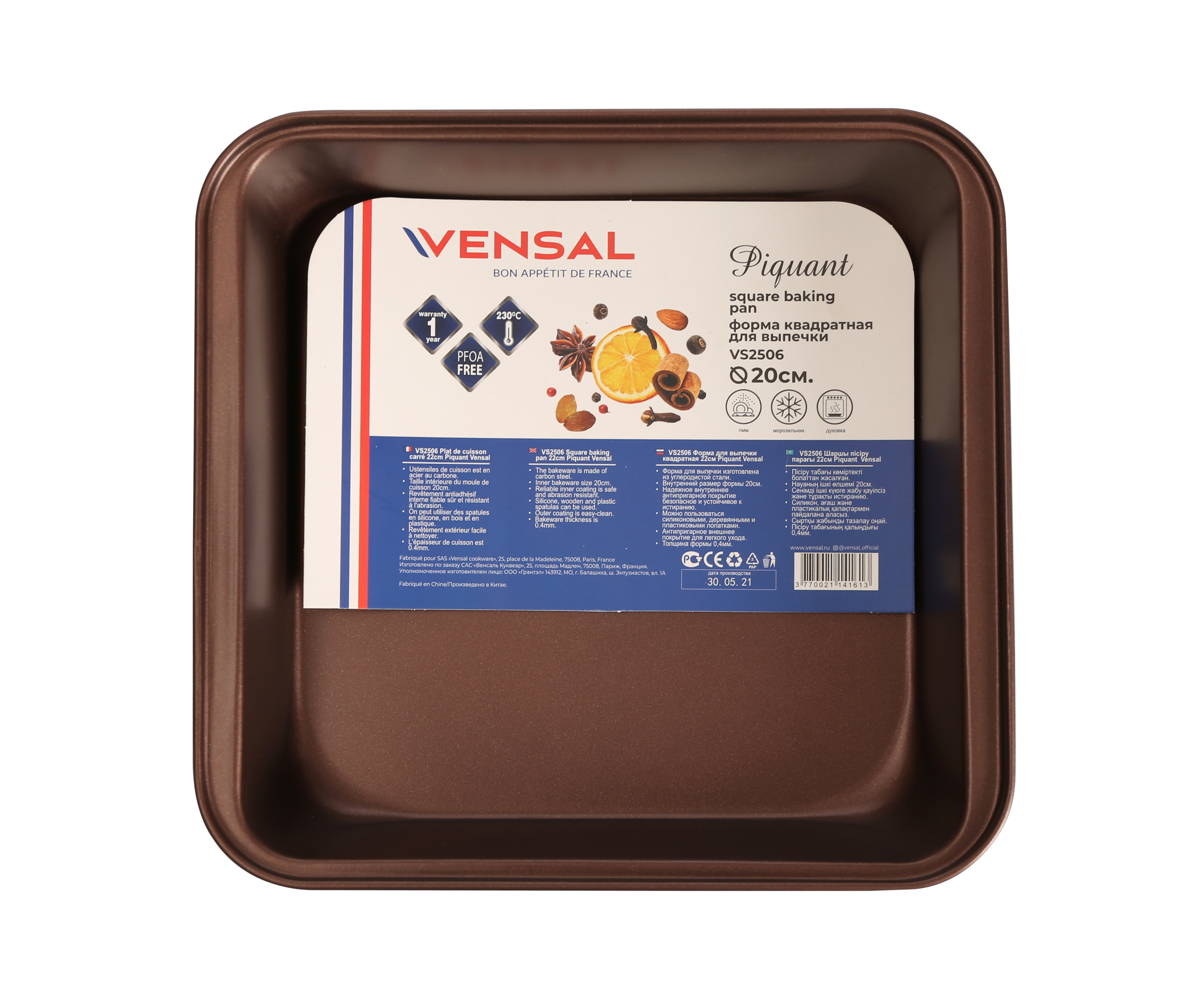 Форма для выпечки VENSAL, 20 см x 20 см, 1 яч.