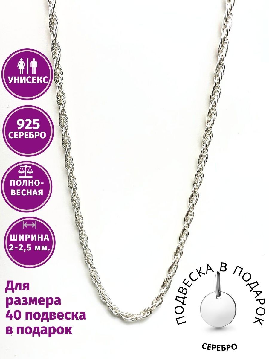 VERA LIGHT Цепочка серебряная женская на шею, плетение "Корда", цепь серебро 925 проба, из серебра мужская