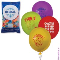 Шары воздушные 12" (30 см), комплект 50 шт., 12 цветов, 8 рисунков "поздравления", в пакете, 1103-00