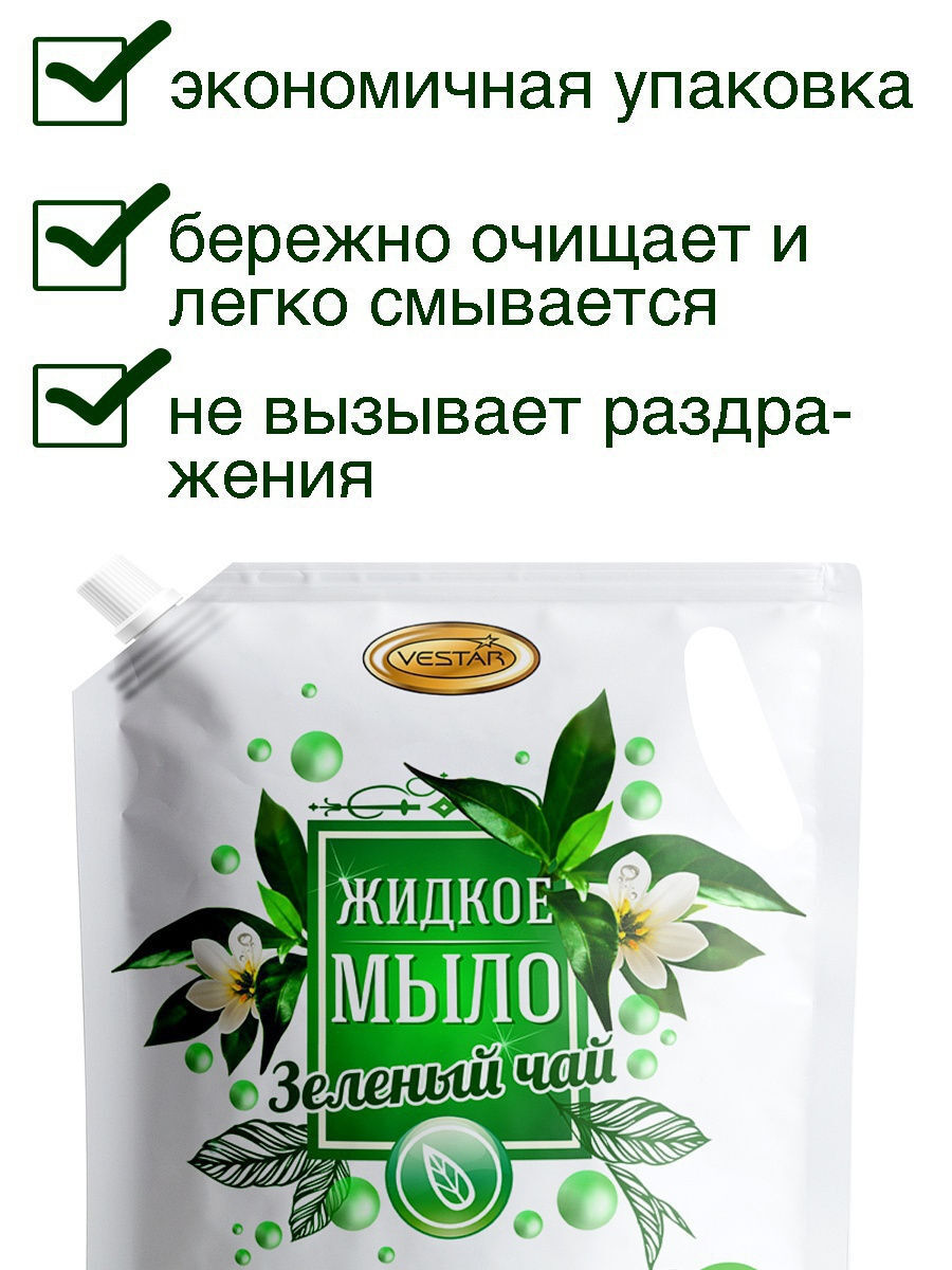 Увлажняющее жидкое мыло "Зеленый чай" для рук, для душа, 2 литра, Vestar