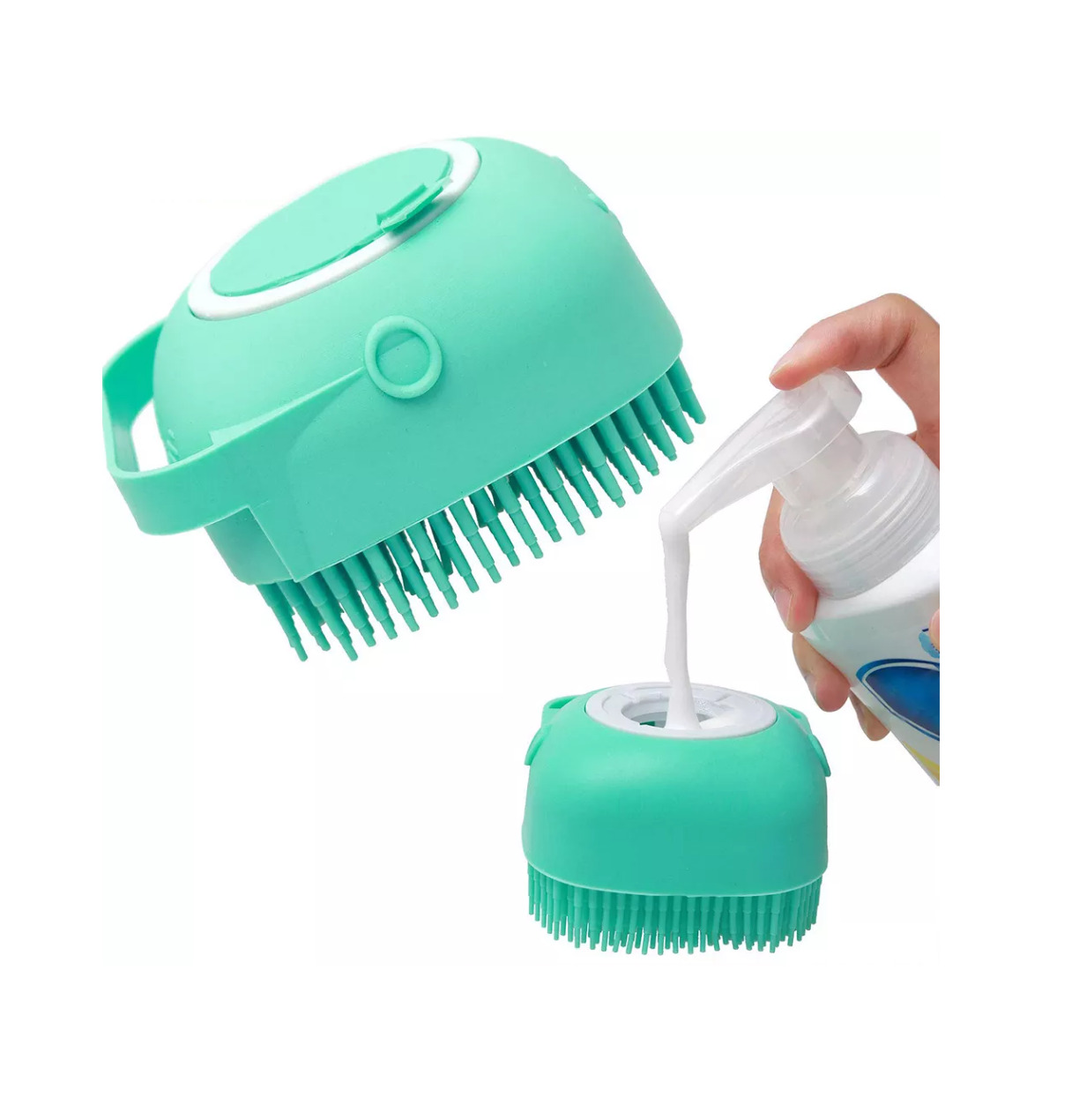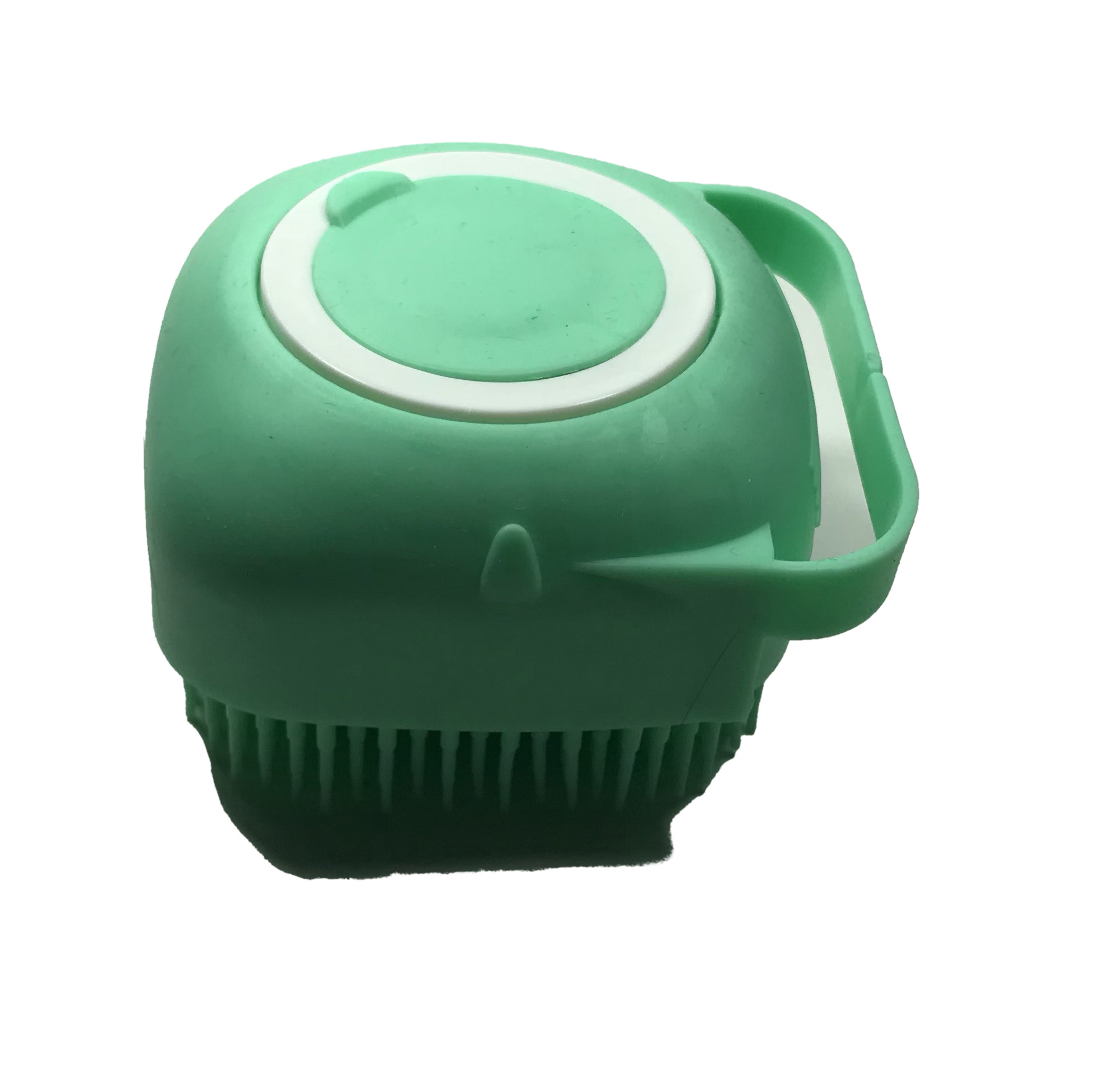 Мочалка-щетка силиконовая с контейнером для шампуня/геля Vevoxo, салатовая