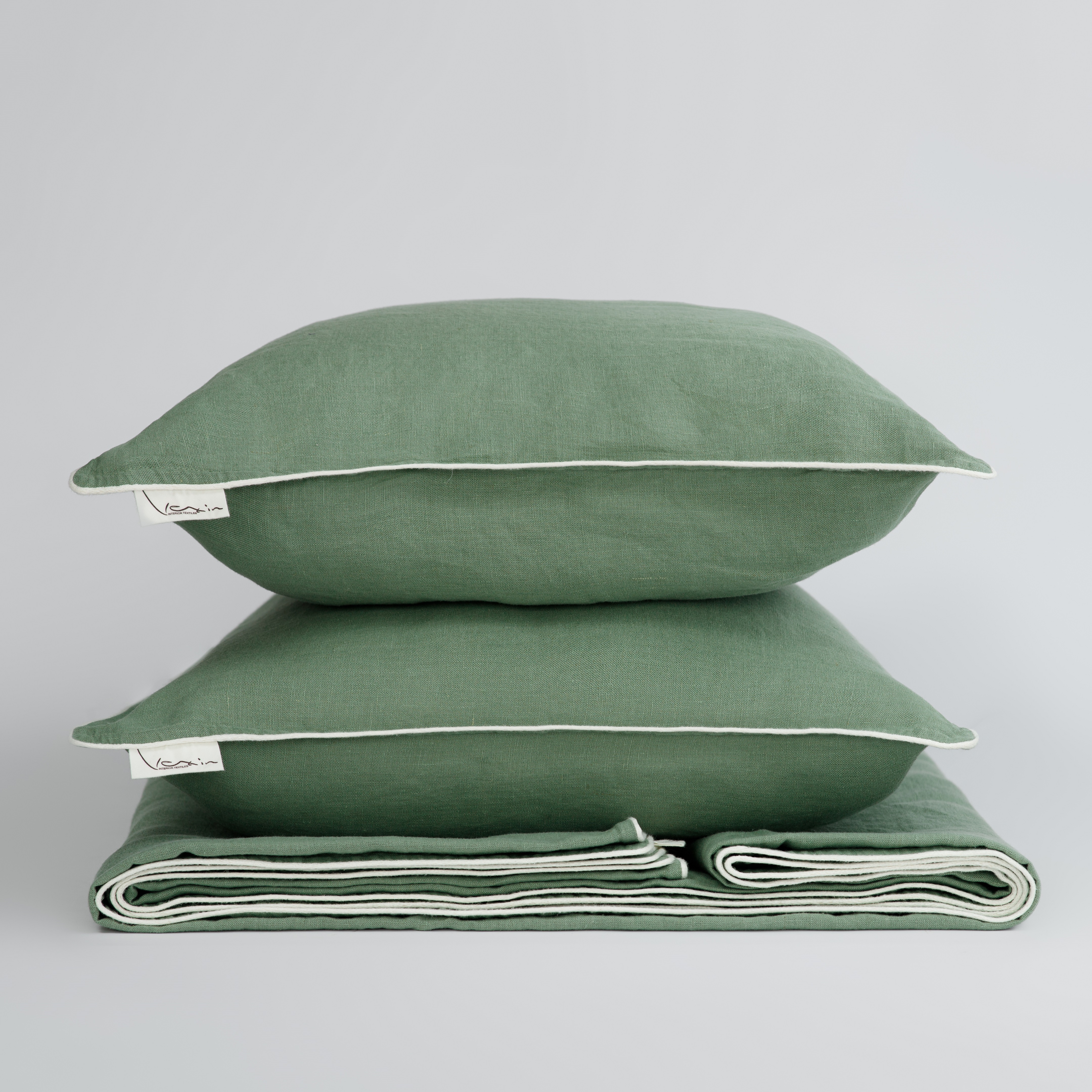 Комплект постельного белья VEXIN Хвоя с серым кантом Семейный, Лен, наволочки 50x70